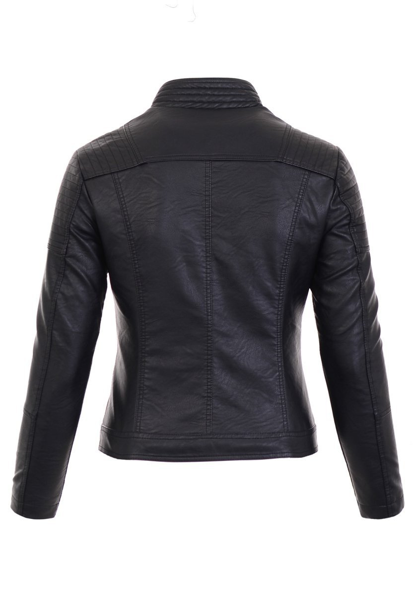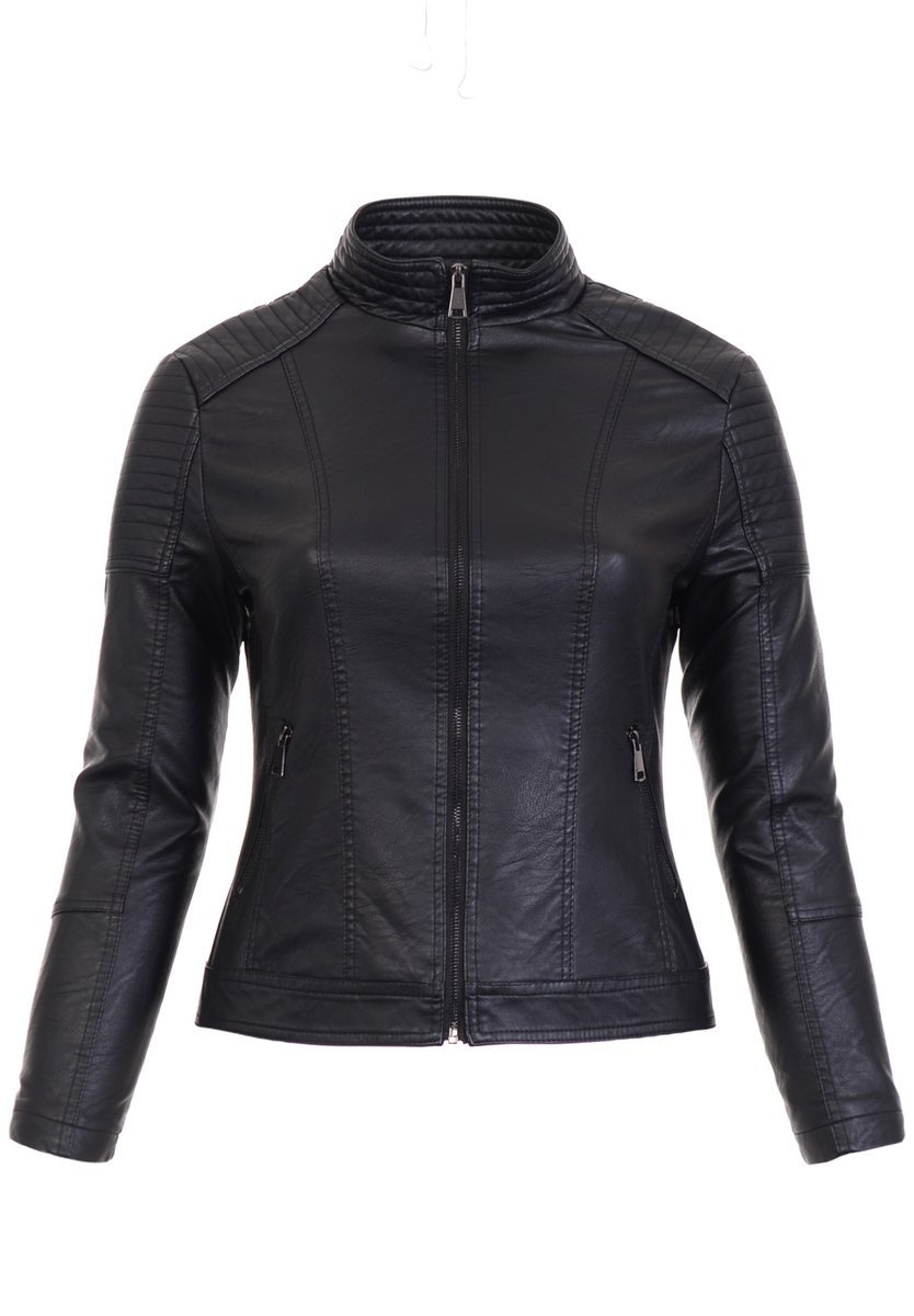 Ta klasyczna ramoneska ze skóry ekologicznej w kolorze czarnym została zaprojektowana z myślą o najbardziej wymagających klientkach. Doskonale sprawdzi się w stylizacjach codziennych i biznesowych. Pikowanie na karku i ramionach dodaje jej wyjątkowo modnego wyglądu, a pionowe przeszycia doskonale podkreślają kobiecą sylwetkę. Kurtka jest taliowana i charakteryzuje ją subtelne wcięcie w pasie. Zapinana jest na pojedynczy, pionowy suwak w srebrnym odcieniu, ma również dwie wygodne kieszenie zapinane na zamki, zlokalizowane w przedniej części.