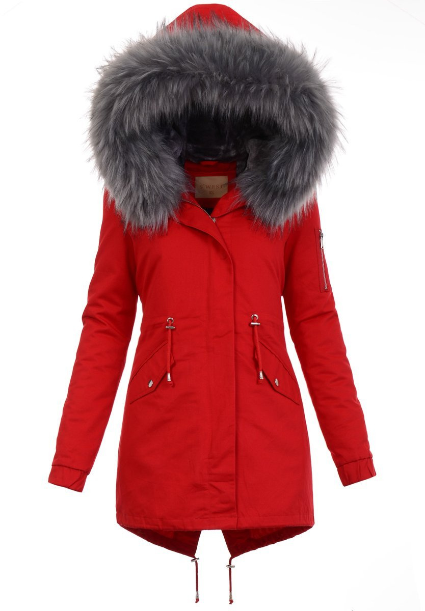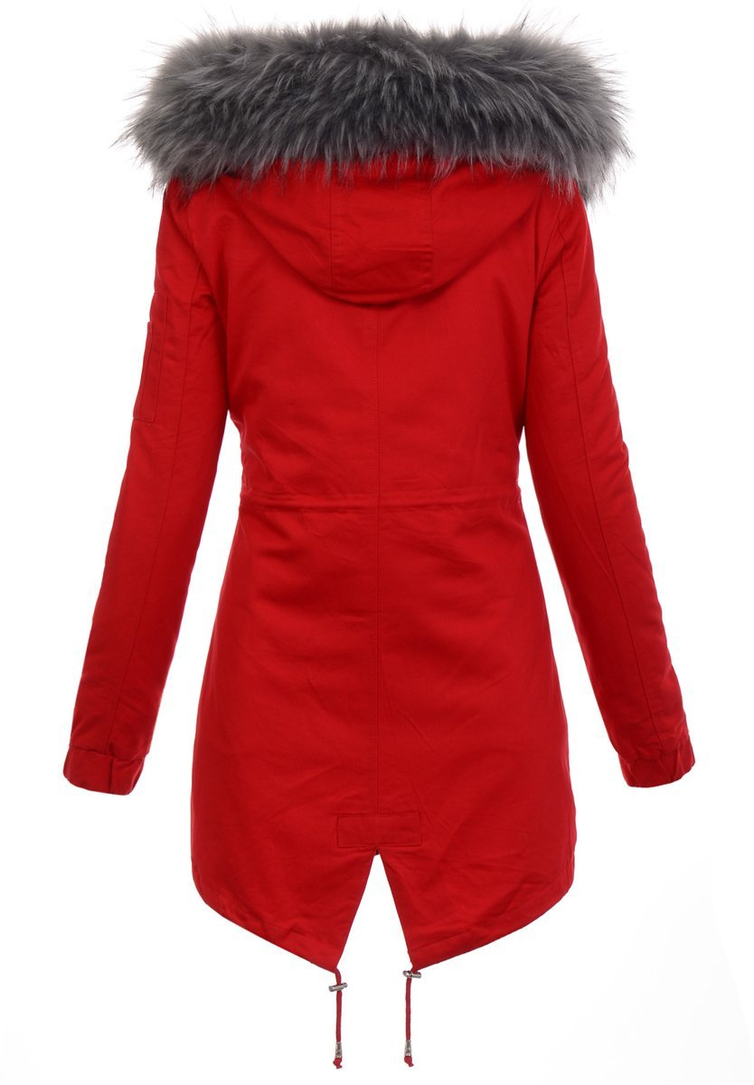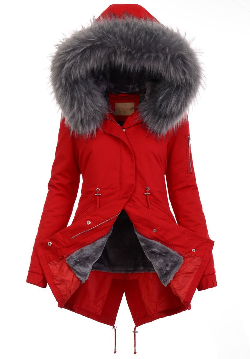 Damska Kurtka Parka 2w1 Emilia Czerwona z Szarym Futerkiem
