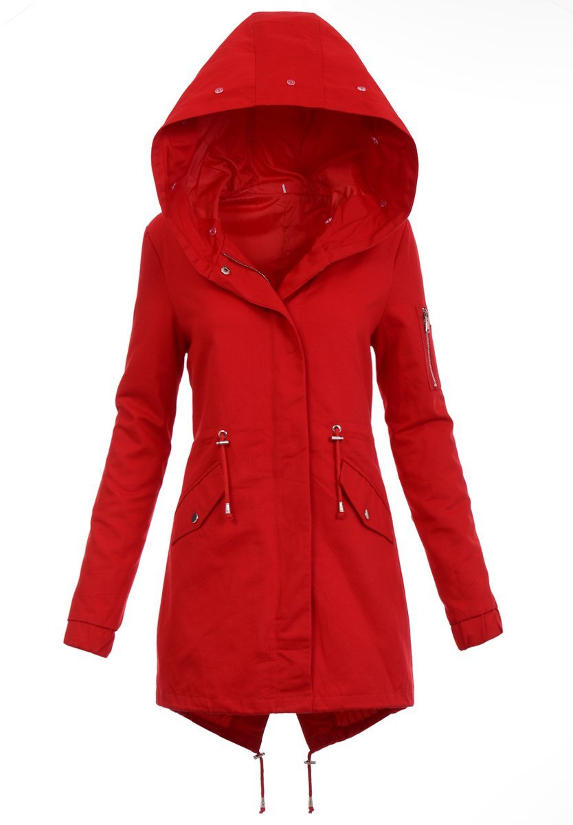 Kurtka parka to ponadczasowy i nie wychodzący z mody trend, który powinien znaleźć się w szafie każdej kobiety. Kurtka damska 2 w 1 w kolorze czerwonym jest kurtką zimową, jednak dzięki odpinanej podpince doskonale sprawdzi się także wiosną i jesienią (można ją odpiąć w całości razem z kapturem i rękawami). Podszewka jest bardzo ciepła, dzięki czemu niestraszne jej mrozy i niskie temperatury. Rękawy parki również są ocieplone i wykończone materiałem. W pasie, na mankietach oraz na dole kurtki znajdują się ozdobne i funkcjonalne ściągacze, które pozwolą dopasować ubranie do każdej sylwetki. Kurtka zapinana jest na napy oraz suwak, posiada dwie duże kieszenie z przodu oraz jedną kieszeń na lewym rękawie. Kaptur parki jest nieodpinany, w przeciwieństwie do szarego futerka. Skład kurtki: 100% bawełna.