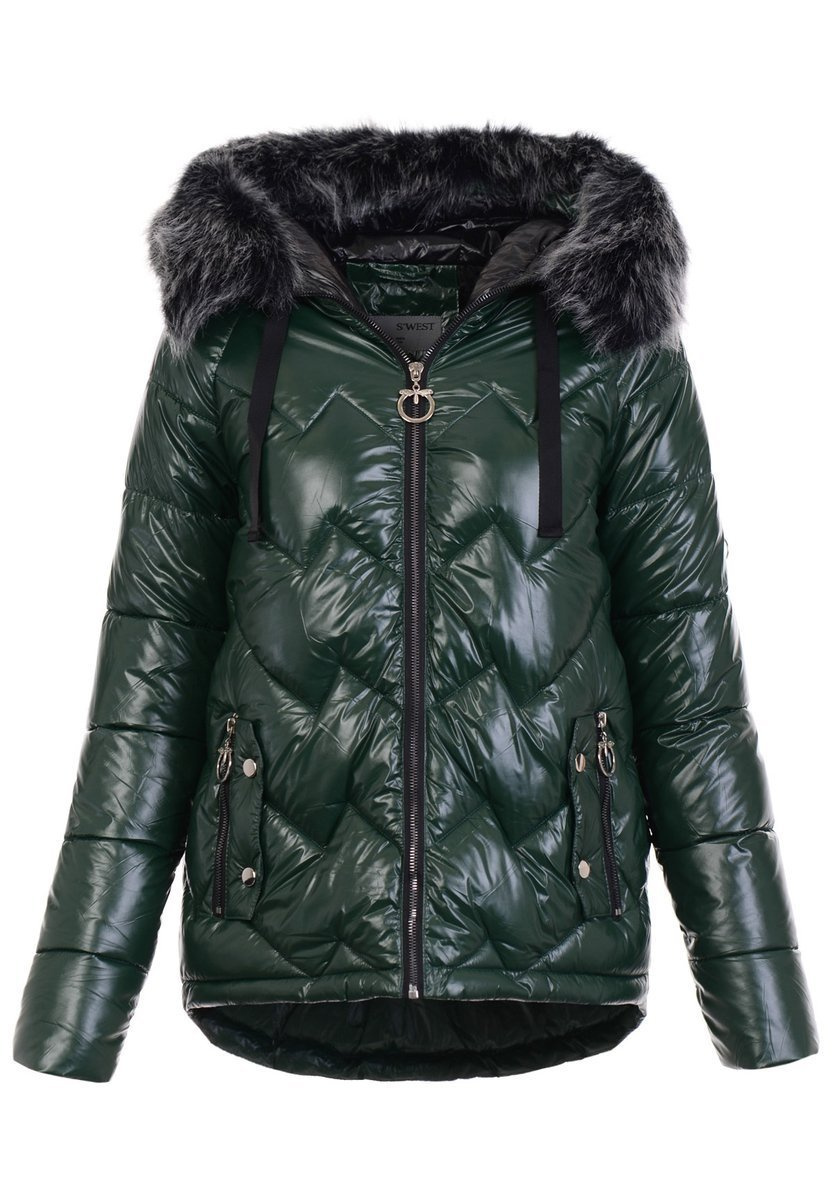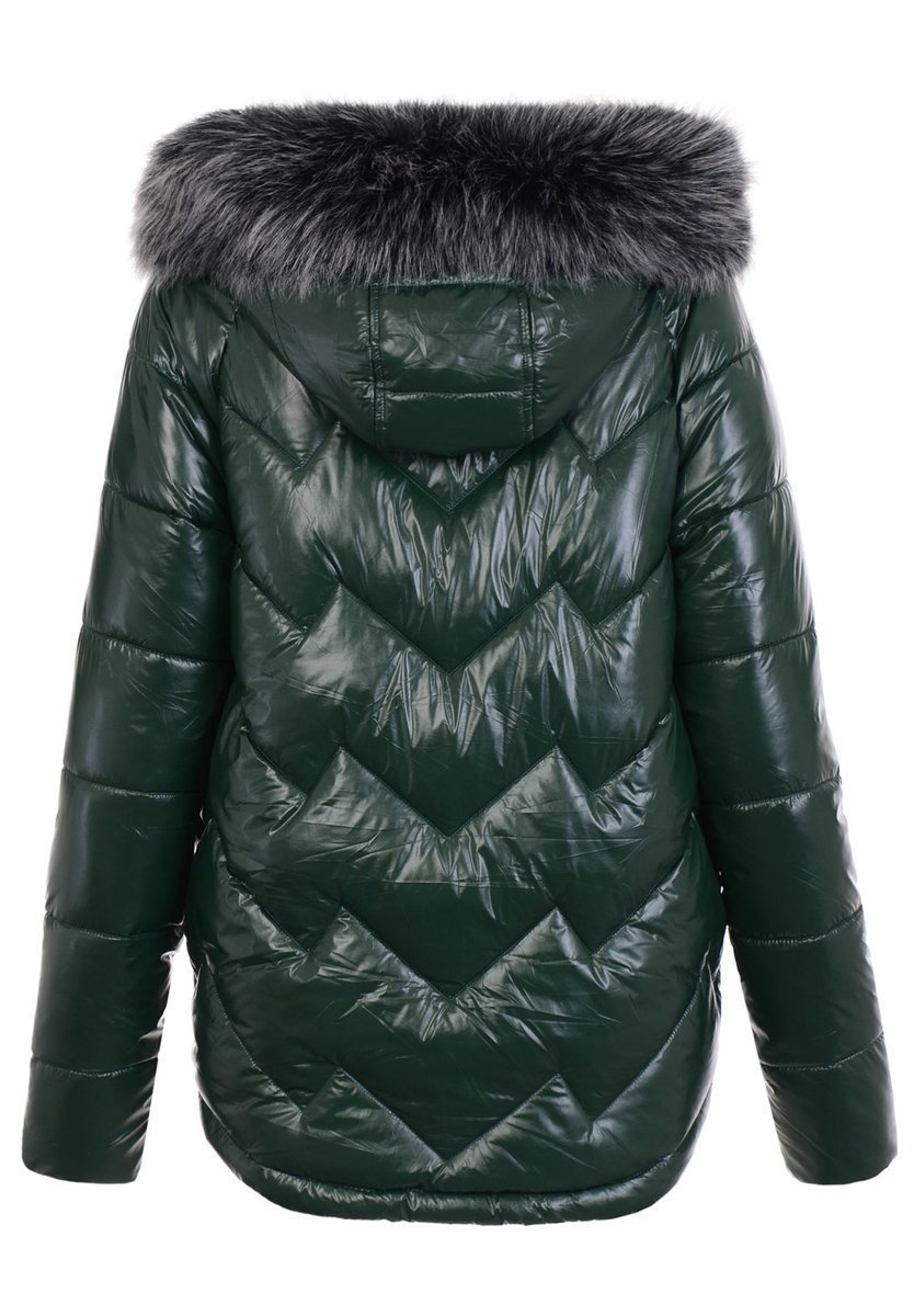 Rewelacyjna kurtka damska w kolorze zielonym. Wypełnienie kurtki zapewnia ciepło w mroźne dni. Rękawy kurtki są ocieplane, wykończone podszewką. Kurtka zasuwana jest na suwak. Kurtka posiada z przodu dwie kieszenie zasuwane na suwaki. Nieodpinany kaptur z odpinanym futerkiem zapewnia ciepło w wietrzne zimowe dni. Ściągacz w mankietach kurtki. Tył kurtki dłuższy o ok 7 cm. Kurtka wykonana jest z materiałów najwyższej jakości. Kurtka ocieplona jest najwyższej jakości ociepleniem syntetycznym, które zapewnia doskonałą termoizolację oraz wysoki komfort użytkowania.