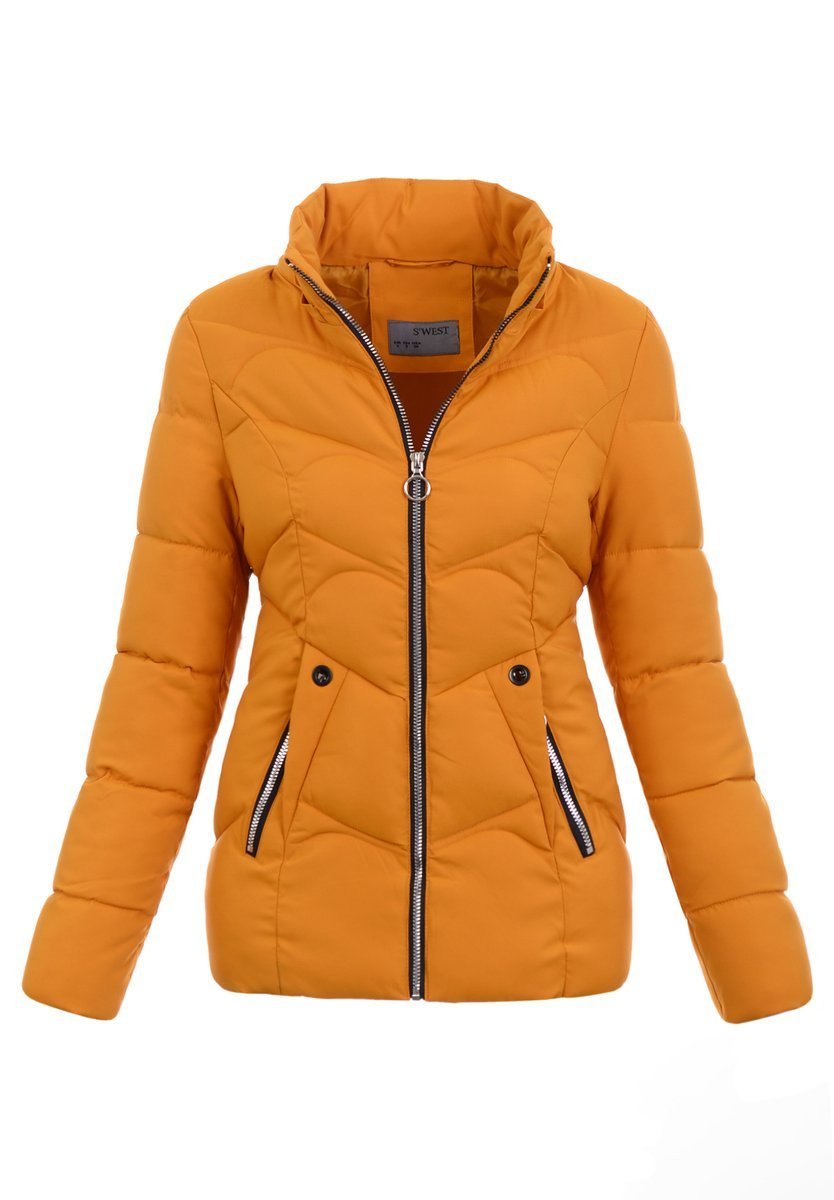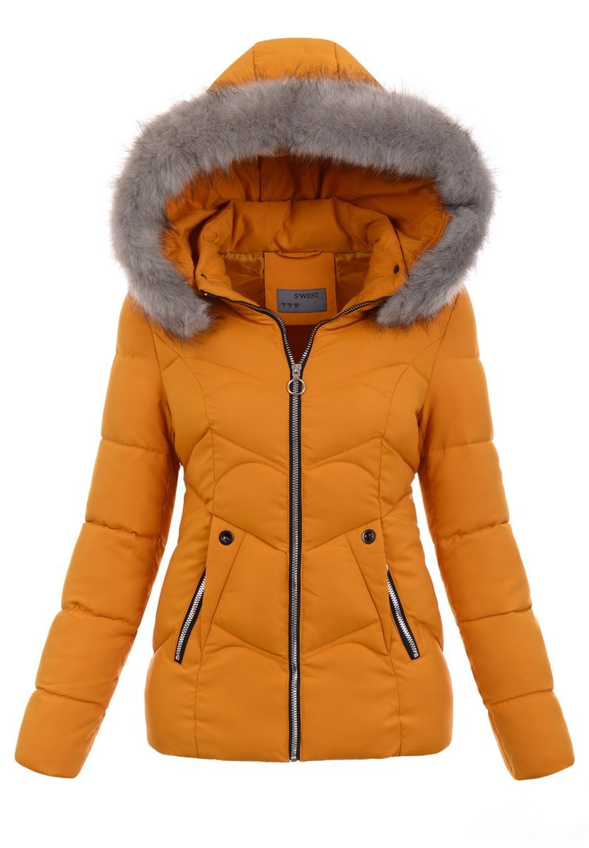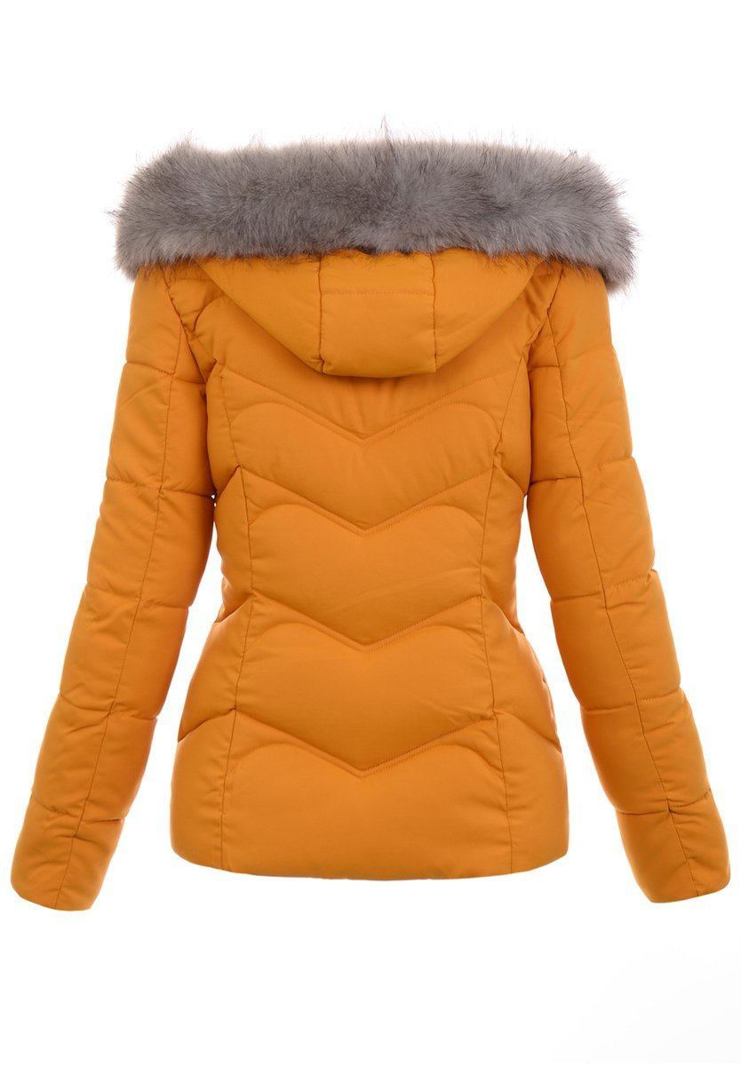 Damska Kurtka Ortalionowa Helena Żółta to idealna propozycja na zimniejsze dni. Kurtka posiada syntetyczne wypełnienie, które utrzymuje ciepło, a z wierzchu pokryta została poliestrem. Dzięki temu stanowi doskonałą izolację. Kurtka posiada kaptur wykończony szarym futerkiem, który można odpiąć. W takiej wersji idealnie sprawdzi się jesienią czy też wiosną. Kurtka zapinana jest na zamek błyskawiczny. Posiada także dwie zapinane na zamek kieszenie. Model łączy w sobie praktyczność oraz elegancję.