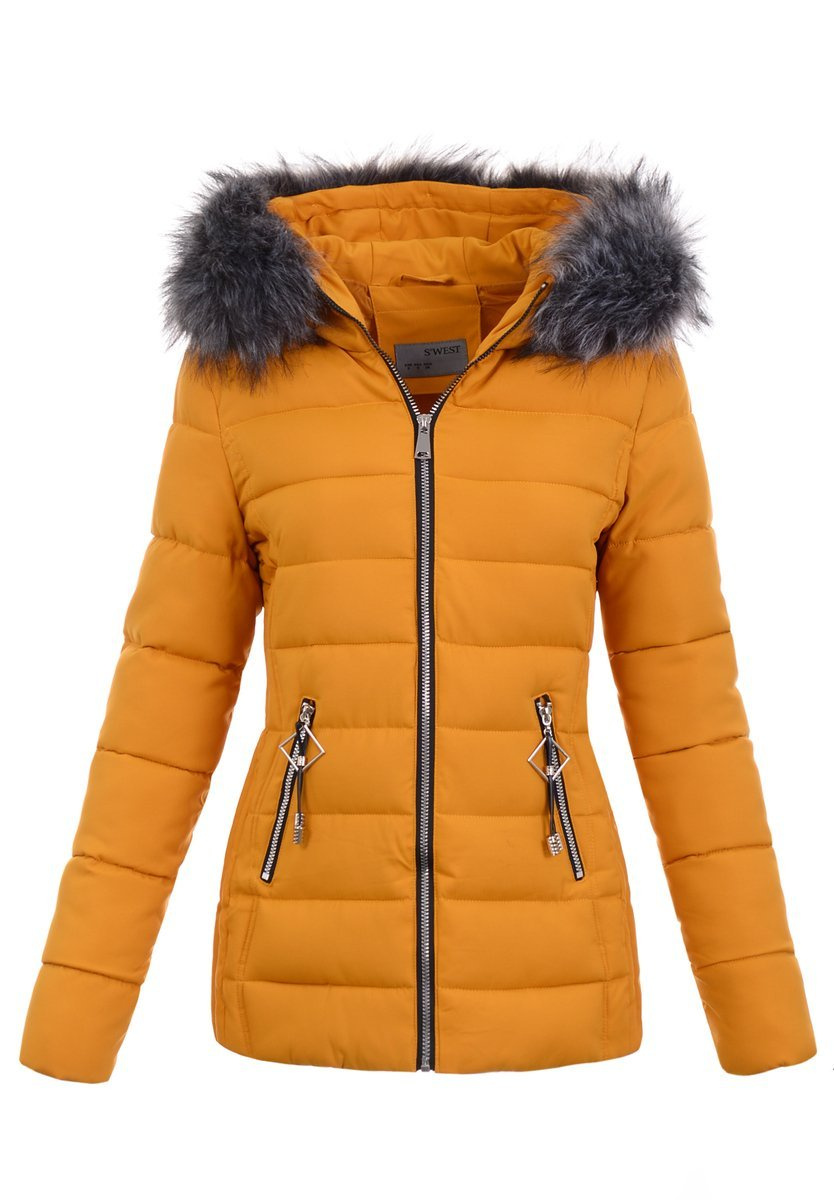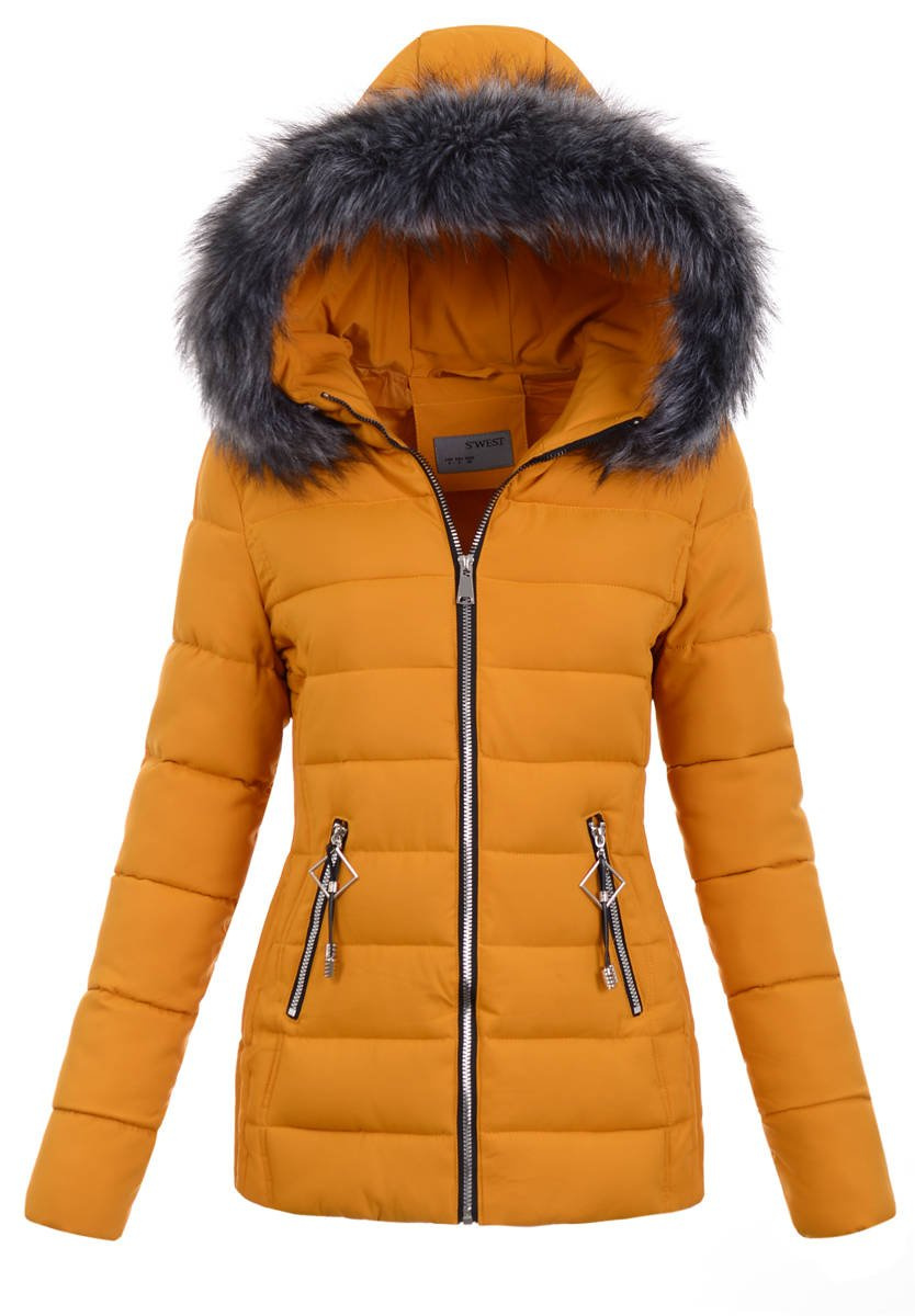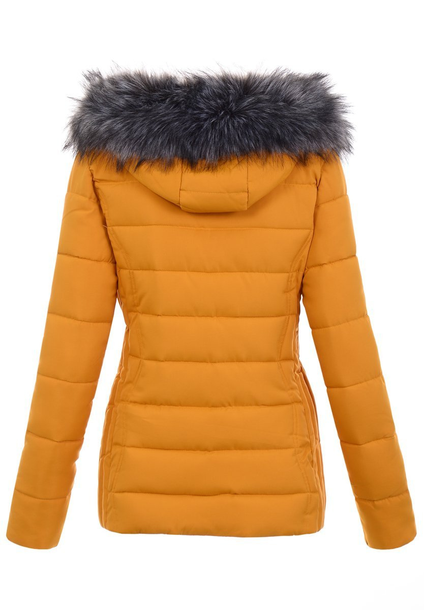 Damska Kurtka Ortalionowa Lena Żółta doskonale sprawdzi się w sezonie jesień/zima. Kurtka wykonana została z poliestru. Posiada podszewkę. Syntetyczne wypełnienie sprawia, że kurta doskonale utrzymuje ciepło podczas mroźnych dni. Posiada również kaptur wykończony ciemno - szarym, dłuższym futerkiem, który można odpiąć. Kurtka zapinana jest na zamek błyskawiczny. Posiada dwie kieszenie umieszczone z przodu również zapinane na zamek. Kurtka ma ściągacze, dzięki którym jeszcze lepiej dopasowuje się do sylwetki.