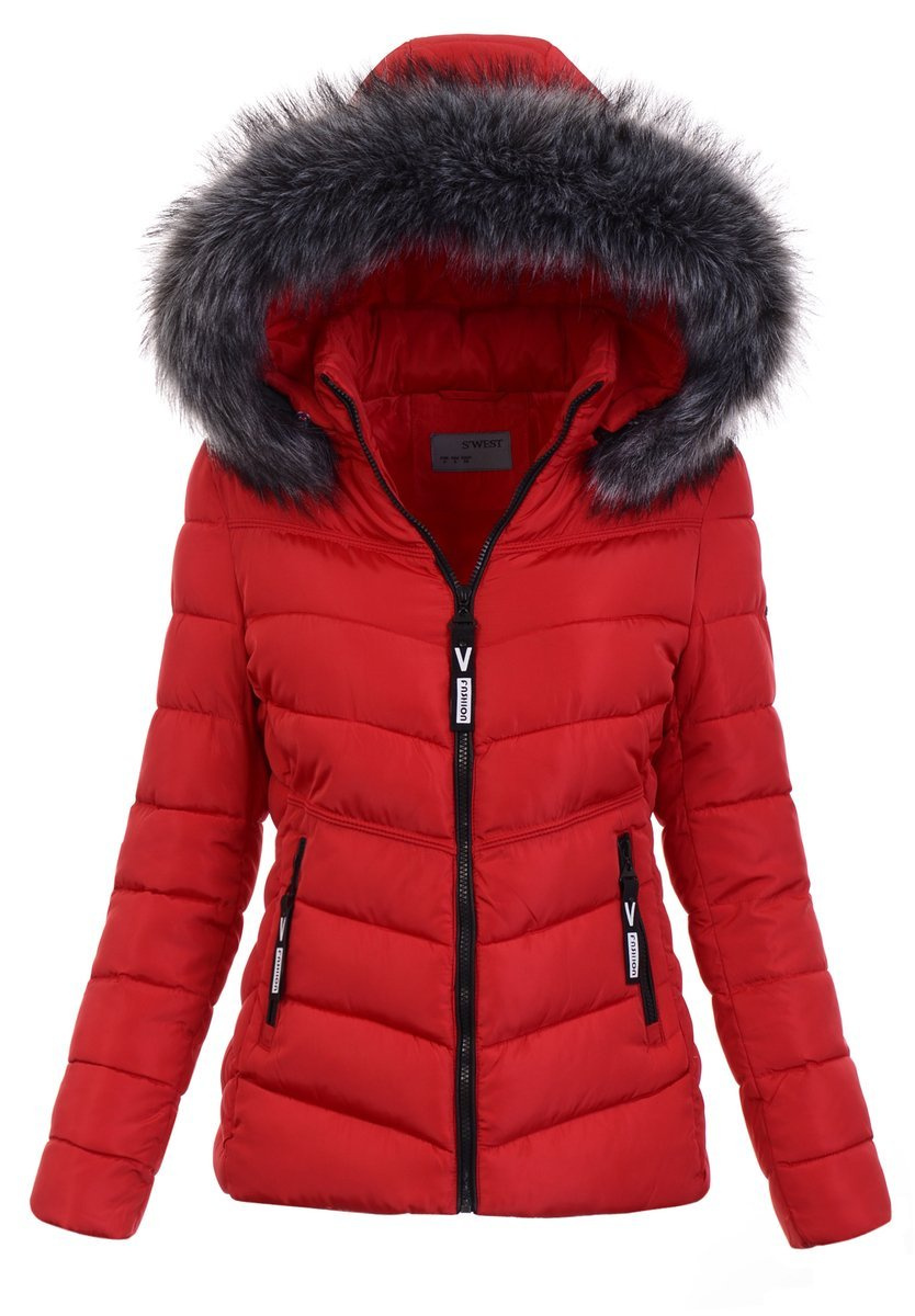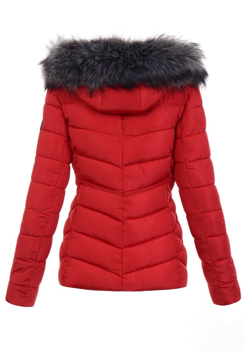 Rewelacyjna kurtka damska w kolorze czerwonym. Wypełnienie kurtki zapewnia ciepło w mroźne dni. Rękawy kurtki są ocieplane, wykończone podszewką. Kurtka zasuwana jest na suwak. Kurtka posiada z przodu dwie kieszenie zasuwane na suwaki. Odpinany kaptur z odpinanym futerkiem zapewnia ciepło w wietrzne zimowe dni.  Kurtka wykonana jest z materiałów najwyższej jakości. Kurtka ocieplona wysokiej jakości wypełnieniem syntetycznym które zapewnia doskonałą termoizolację oraz wysoki komfort użytkowania.