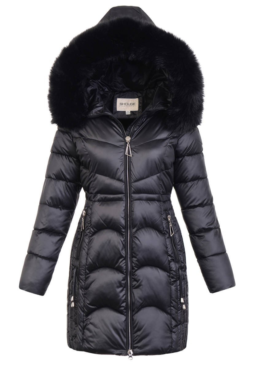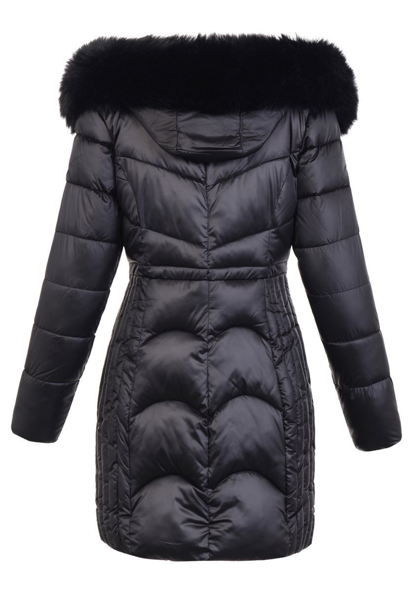 Rewelacyjna kurtka damska w kolorze czarnym. Wypełnienie kurtki zapewnia ciepło w mroźne dni. Rękawy kurtki są ocieplane, wykończone podszewką. Kurtka zasuwana jest na suwak. Kurtka posiada z przodu dwie kieszenie zasuwane na suwaki. Nieodpinany kaptur z odpinanym futerkiem zapewnia ciepło w wietrzne zimowe dni. Kurtka wykonana jest z materiałów najwyższej jakości. Kurtka ocieplona wysokiej jakości puchem które zapewnia doskonałą termoizolację oraz wysoki komfort użytkowania.