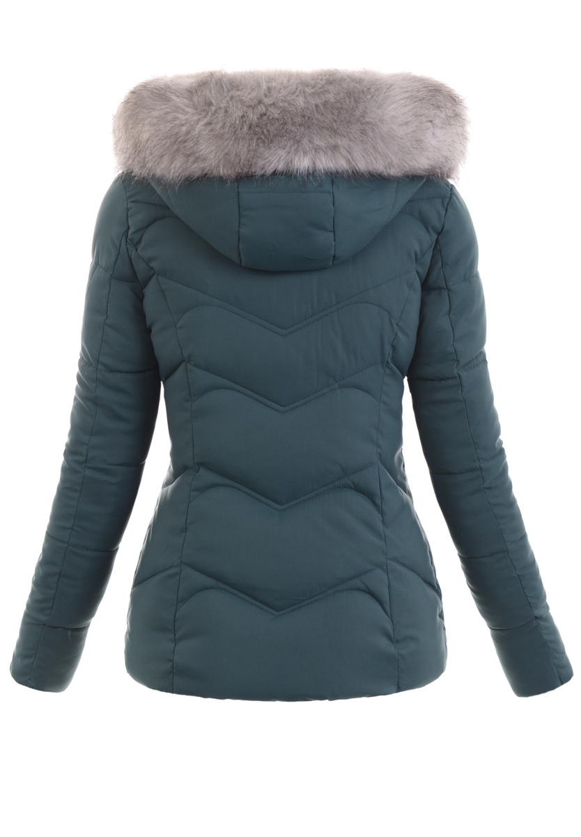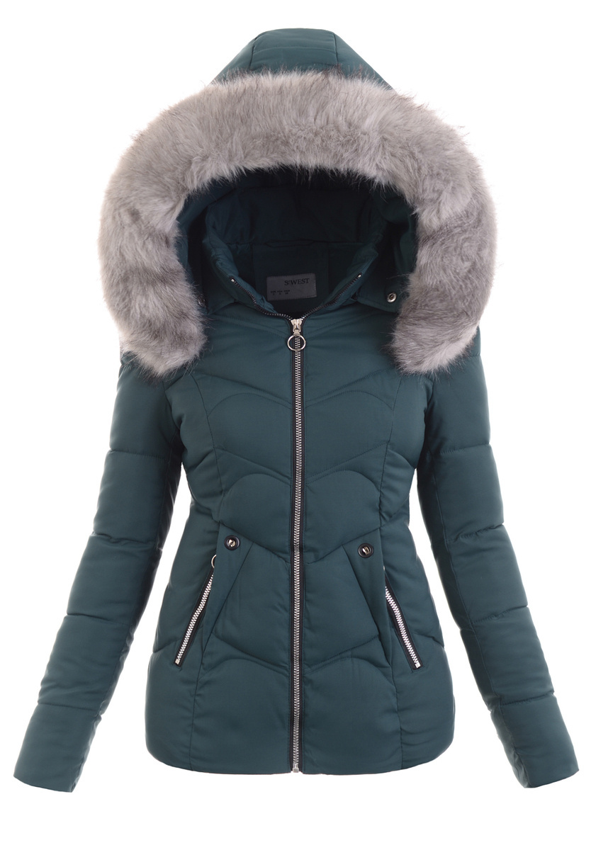 Damska Kurtka Ortalionowa zielona to idealna propozycja na zimniejsze dni. Kurtka posiada syntetyczne wypełnienie, które utrzymuje ciepło, a z wierzchu pokryta została poliestrem. Dzięki temu stanowi doskonałą izolację. Kurtka posiada kaptur wykończony szarym futerkiem, który można odpiąć. W takiej wersji idealnie sprawdzi się jesienią czy też wiosną. Kurtka zapinana jest na zamek błyskawiczny. Posiada także dwie zapinane na zamek kieszenie. Model łączy w sobie praktyczność oraz elegancję.