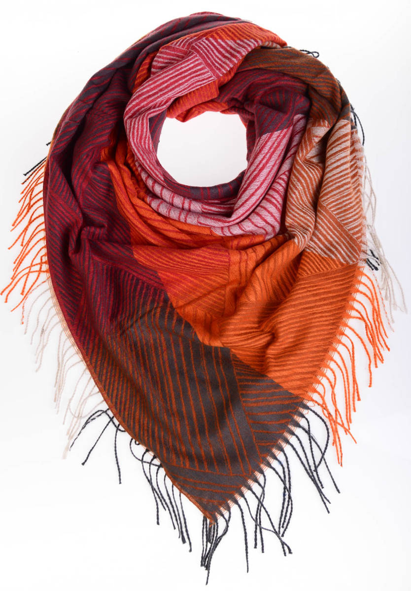 Damska duża chusta. Chusta w kolorze ceglanym w kratkę. Szal sprawdzi się idealnie do wielu stylizacji na jesienne oraz zimowe dni. Materiał: 50% Wiskoza, 50% Bawełna.