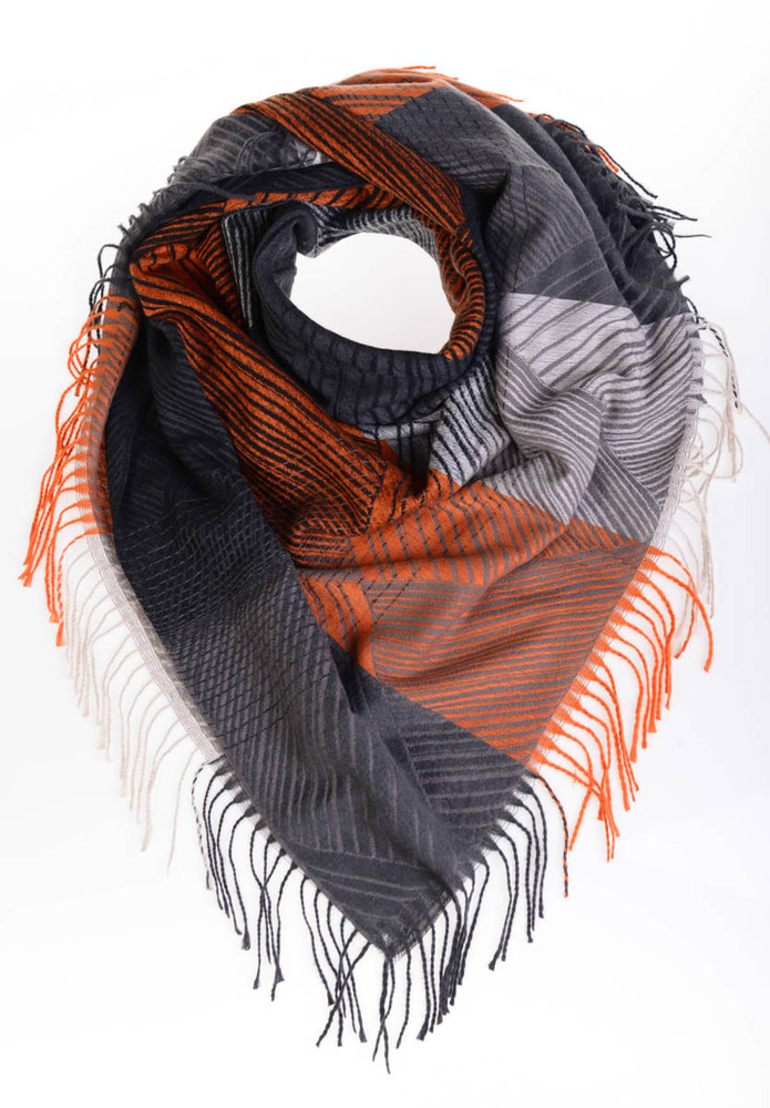 Damska duża chusta. Chusta w kolorze szarym w kratkę. Szal sprawdzi się idealnie do wielu stylizacji na jesienne oraz zimowe dni. Materiał: 50% Wiskoza, 50% Bawełna.
