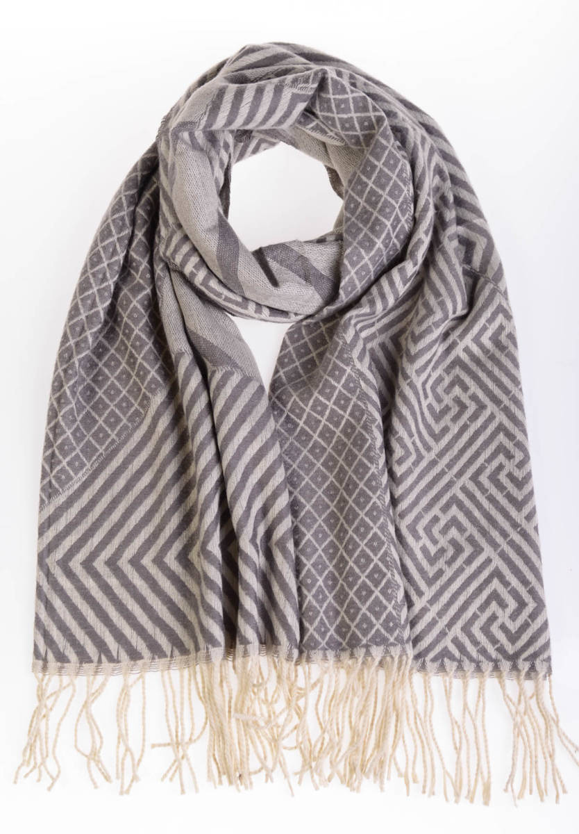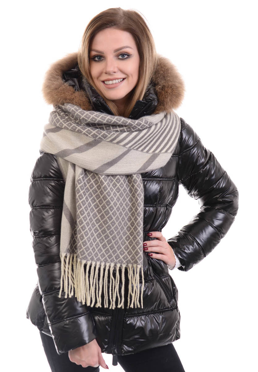 Damski duży szalik. Szalik w kolorze beżowym. Szal sprawdzi się idealnie do wielu stylizacji na jesienne oraz zimowe dni. Materiał: 50% Wiskoza, 50% Bawełna.