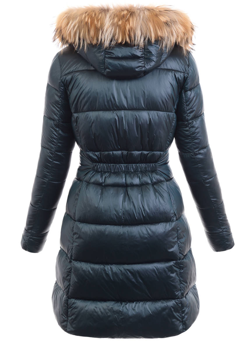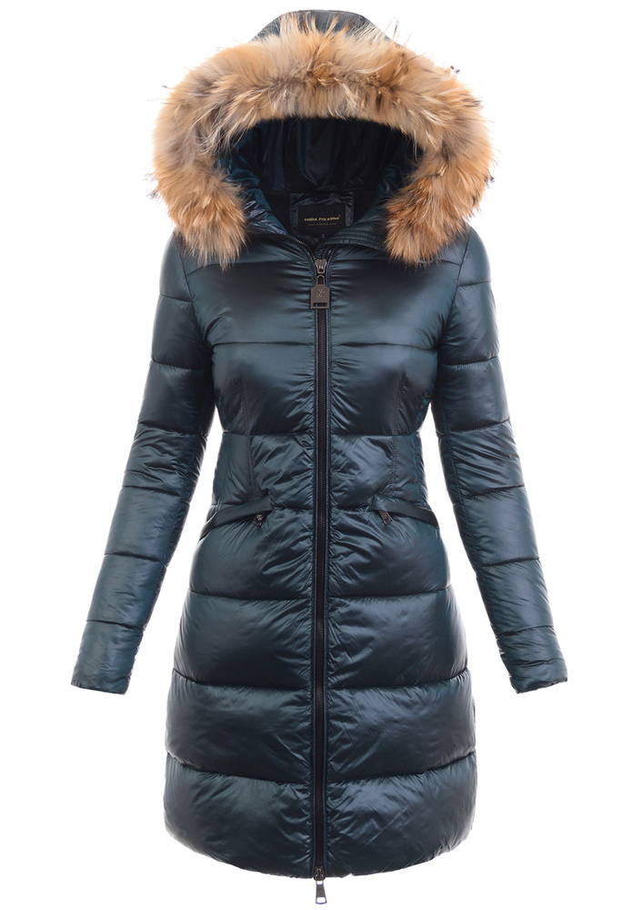 Śliczna kurtka zimowa damska w kolorze perłowo zielonym. Kurtka zapinana jest na podwójny suwak i posiada z przodu dwie kieszenie zasuwane na suwaki. Wysokiej jakości wypełnienie syntetyczne zapewnia ochronę w mroźne, zimowe dni. Rękawy kurtki są ocieplane, wykończone podszewką. Kaptur kurtki jest nieodpinany oraz wykończony przemiłym w dotyku futerkiem naturalnym. Dzięki ściągaczom w rękawach oraz pasie kurtka idealnie dopasowuje się do sylwetki. Kurtka wykonana jest z materiałów najwyższej jakości. Kurtka idealnie sprawdzi się w różnego rodzaju zimowych stylizacjach.