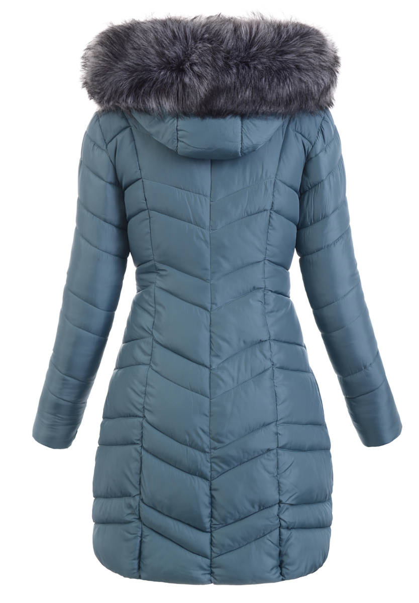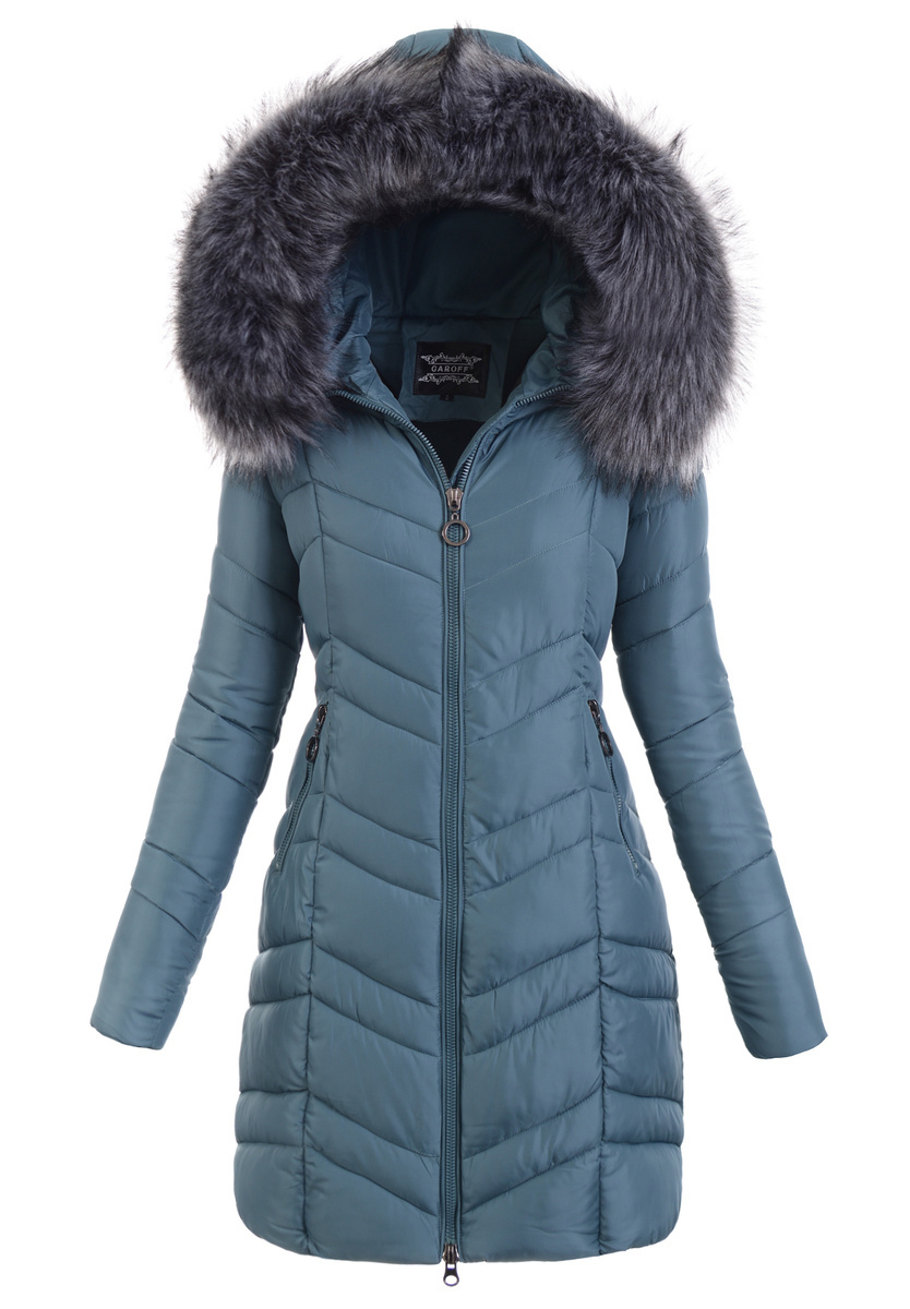 Rewelacyjna kurtka damska w kolorze zielonym. Wypełnienie kurtki zapewnia ciepło w mroźne dni. Kurtka w środku wykończona jest podszewką. Rękawy kurtki są ocieplane, wykończone podszewką. Kurtka zasuwana jest na suwak. Kurtka posiada z przodu dwie kieszenie zasuwane na suwaki. Nieodpinany kaptur zapewniają ciepło w wietrzne zimowe dni. Futerko przy kapturze jest odpinane. Kurtka wykonana jest z materiałów najwyższej jakości. Kurtka w mankietach posiada ściągacz. Kurtka ocieplona jest bardzo wysokiej jakości wypełnieniem syntetycznym, które zapewnia doskonałą termoizolację oraz wysoki komfort użytkowania.