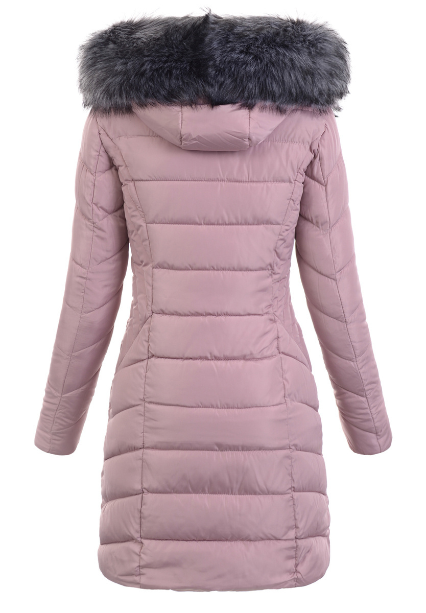 Rewelacyjna kurtka damska w kolorze różowa. Wypełnienie kurtki zapewnia ciepło w mroźne dni. Kurtka w środku wykończona jest podszewką. Rękawy kurtki są ocieplane, wykończone podszewką. Kurtka zasuwana jest na suwak. Kurtka posiada z przodu dwie kieszenie zasuwane na suwaki.  Nieodpinany kaptur ze ściagaczem zapewniają ciepło w wietrzne zimowe dni. Futerko przy kapturze jest odpinane. Kurtka wykonana jest z materiałów najwyższej jakości. Kurtka w mankietach posiada ściągacz. Kurtka ocieplona jest bardzo wysokiej jakości wypełnieniem syntetycznym, które zapewnia doskonałą termoizolację oraz wysoki komfort użytkowania.