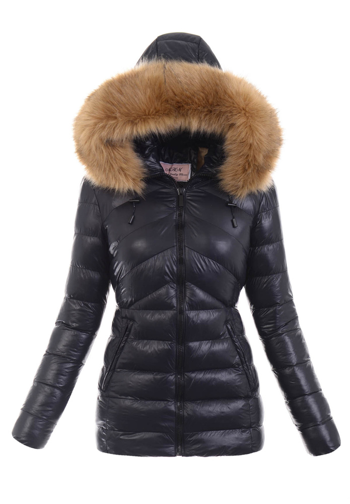 Bardzo modna w tym sezonie kurtka zimowa damska w kolorze czarnym. Kurtka zapinana jest na suwak i posiada z przodu dwie kieszenie zasuwane na suwaki. Wysokiej jakości wypełnienie syntetyczne jest równomiernie rozprowadzone po kurtce i zapewnia ochronę w mroźne, zimowe dni. Podszewka kurtki wykonana z futerka. Rękawy kurtki są ocieplane, wykończone podszewką. Dodatkowym atutem jest nieodpinany kaptur z odpinanym futerkiem, który zapewnia ochronę przed wiatrem i deszczem. Ściągacz w mankietach kurtki. Suwaki i ozdoby w kurtce są w kolorze czarnym. Kurtka wykonana jest z materiałów najwyższej jakości. Kurtka idealnie sprawdzi się w różnego rodzaju zimowych stylizacjach.