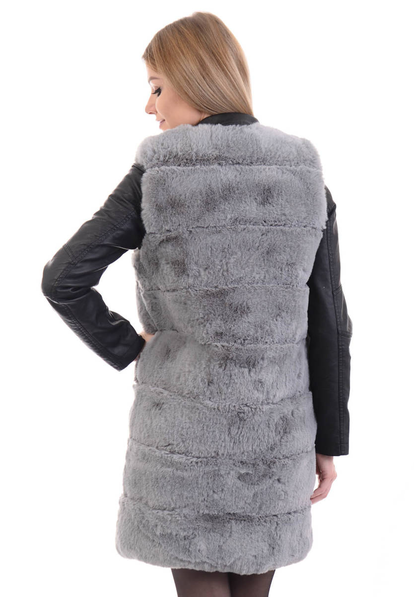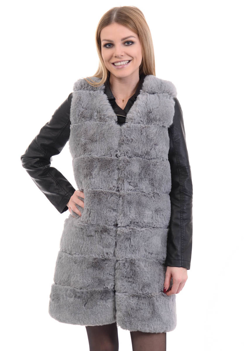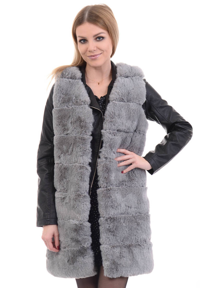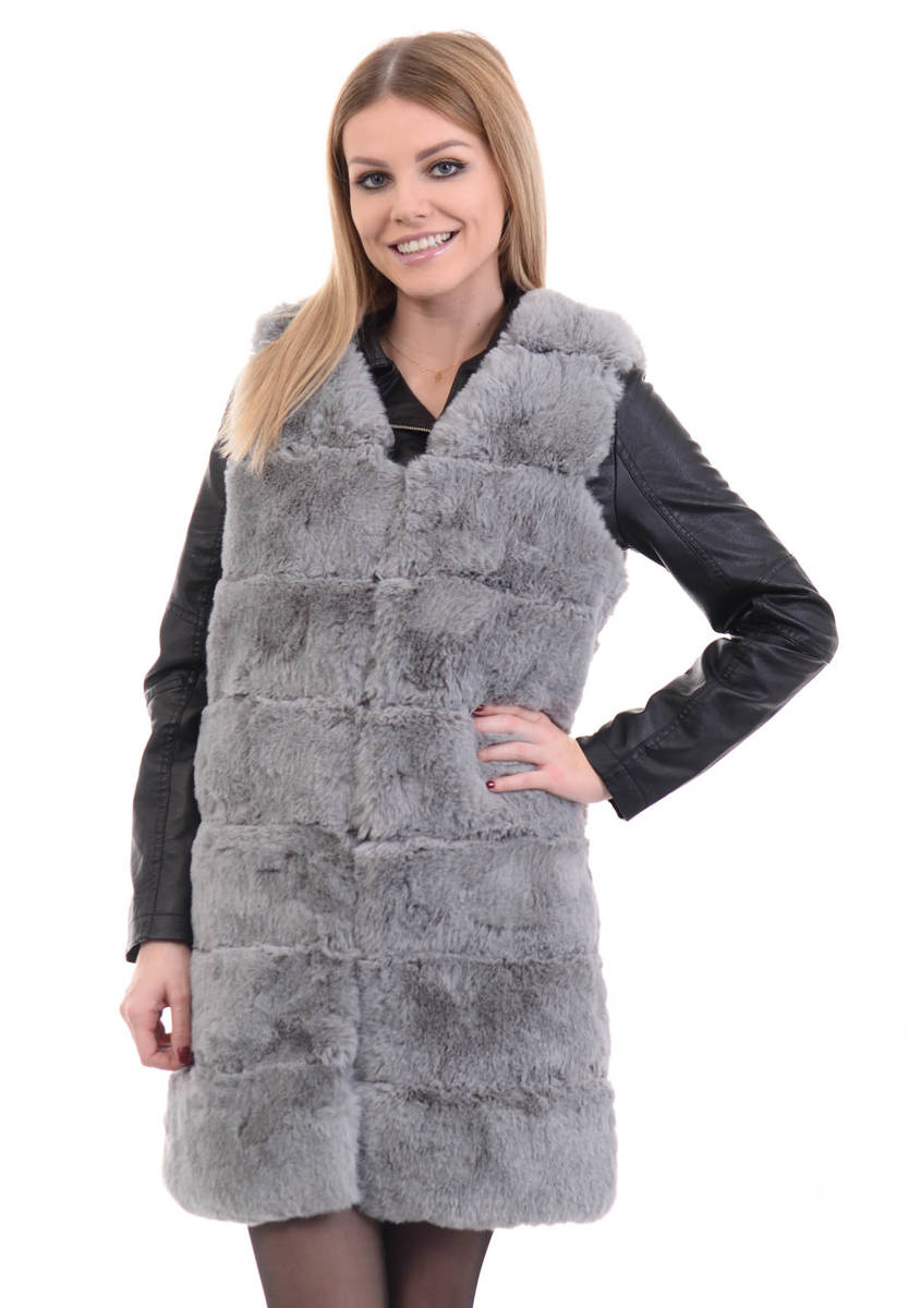 Bardzo modna długa futrzana kamizelka - narzutka w kolorze szarym. Kamizelka zapinana jest na haftki, jednak swobodnie można nosić ja niezapiętą. Kamizelka ma bardzo wygodny krój i idealnie sprawdzi się do wielu stylizacji. Kamizelka posiada dwie kieszenie. Futerko jest bardzo przyjemne w dotyku oraz wykonane z materiałów najwyższej jakości.