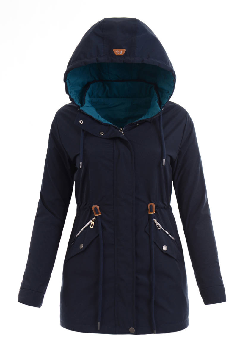 Kurtka parka o kroju płaszczyka to świetny wybór na każdą porę roku, zwłaszcza na chłodniejsze, wiosenne popołudnia. Dostępna w kolorze granatowo-morskim, dwustronna kurtka kapitalnie sprawdzi się w czasie deszczu i wietrznej pogody. Ściągacze znajdujące się na wysokości pasa pozwalają na idealne dopasowanie jej do figury, a dwie ozdobne kieszonki zapinane na suwaki, umożliwiają schowanie w nich potrzebnych rzeczy. Kaptur kurtki zapewnia ciepło także na wysokości karku oraz głowy, jest również całkowicie odpinany. Parka została uszyta z odpornego na wilgoć poliestru. Materiał: 100% Poliester.