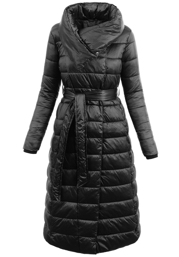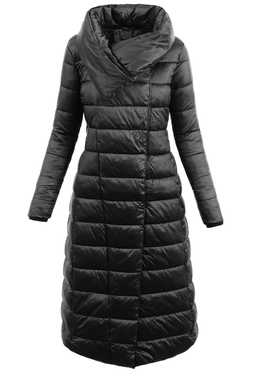 Jedna z modniejszych fasonów w tym sezonie kurtka zimowa damska w kolorze czarnym. Kurtka zapinana jest na suwak i napy. Kurtka posiada dwie głębokie zapinane na suwak kieszenie. Wysokiej jakości wypełnienie syntetyczne rozprowadzone jest równomiernie na całej długości kurtki i wykończone jest materiałem . Rękawy kurtki są ocieplane, wykończone podszewką. Kurtka nie posiada kaptura, zamiast niego płaszczyk ma duży, kołnierz. Kurtka wykonana jest z materiałów najwyższej jakości. Kurtka idealnie sprawdzi się w różnego rodzaju zimowych stylizacjach.