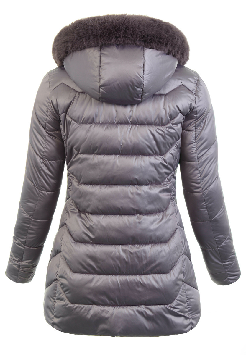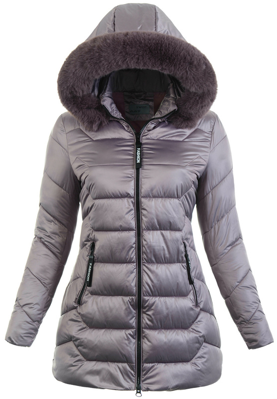 Bardzo modna, kurtka zimowa damska. Kurtka w kolorze fioletowym. Jest to zdecydowany hit tego sezonu. Kurtka zapinana jest na podwójny suwak. Kurtka posiada dwie zapinane na suwak kieszenie. Wysokiej jakości wypełnienie syntetyczne jest równomiernie rozprowadzone po kurtce i zapewnia ochronę w mroźne, zimowe dni. Kurtka wykończona jest podszewką. Rękawy kurtki są ocieplane, również wykończone podszewką. Kurtka posiada duży odpinany kaptur z odpinanym futerkiem. Kurtka dodatkowo posiada ściągacz w tali oraz w rękawach dzięki czemu można idealnie dopasować kurtkę do sylwetki. Wykonana jest z materiałów najwyższej jakości.