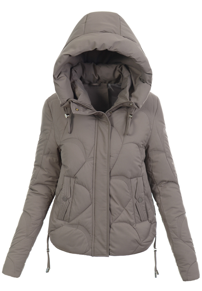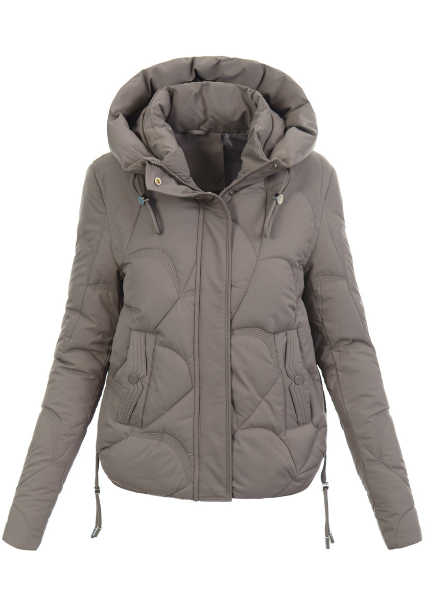 Jeden z modniejszych modeli w tym sezonie, kurtka zimowa w kolorze jasno brązowym. Zapinana na suwak i napy. Kurtka posiada dwie niezapinane kieszenie. Kaptur w kurtce jest nieodpinany, posiada ściągacz. Po bokach znajdują się ściągacze pozwalające na regulację długości kurtki. Kurtka wykonana jest z najwyższej jakości materiałów, które zapewniają komfort jej noszenia. Tył dłuższy o ok 8 cm. Kurtka idealnie nadaje się dla osób podróżujących samochodem, oraz na chłodniejsze jesienne oraz zimowe dni, ponieważ zawiera lżejsze ocieplenie niż w typowych kurtkach zimowych.