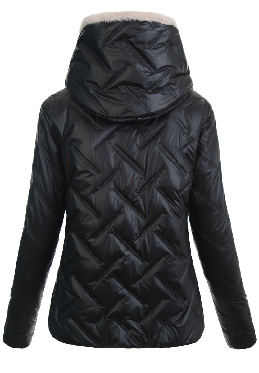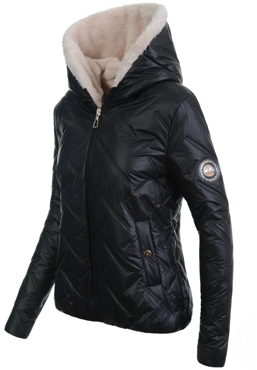 Damska Kurtka Zimowa Regina Czarna z Beżowym Futerkiem