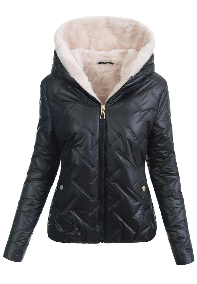 Bardzo modna w tym sezonie damska zimowa, pikowana kurtka w kolorze czarnym. Kurtka wykończona miłym w dotyku beżowym futerkiem. Kurtka zapinana jest na suwak. Ocieplona wysokiej jakości wypełnieniem syntetycznym, która zapewnia termoizolację i wysoki komfort użytkowania. Posiada dwie pojemne, zapinane na napę kieszenie. Kurtka posiada nieodpinany kaptur, który idealnie sprawdzi się jako ochrona przed wiatrem i deszczem. Kurteczka jest idealnym rozwiązaniem dla osób ceniących sobie wygodę idealna do wielu stylizacji.