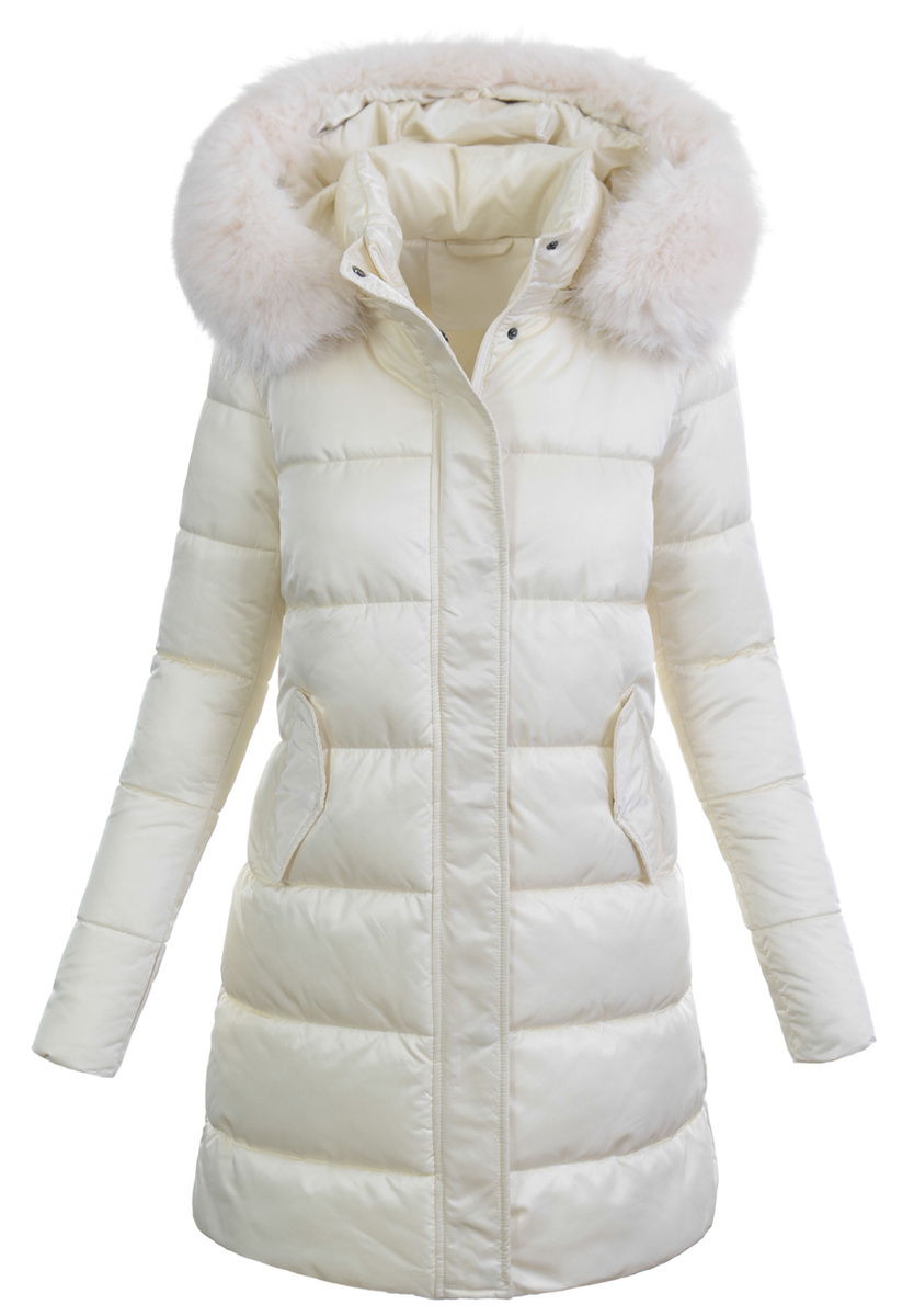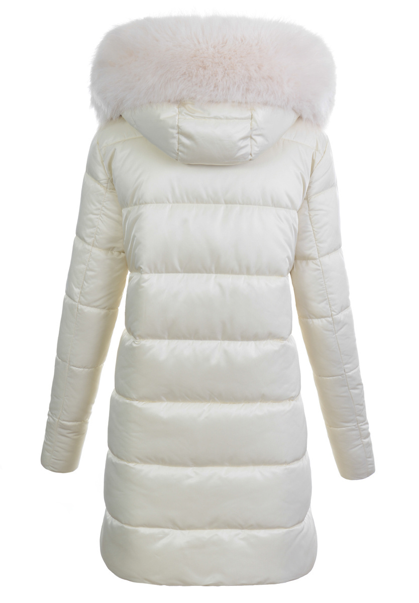 Przepiękna damska zimowa, pikowana kurtka w kolorze ecru. Kurtka zapinana jest na podwójny suwak i napy. Ocieplona wysokiej jakości wypełnieniem syntetycznym, która zapewnia termoizolację i wysoki komfort użytkowania. Posiada dwie pojemne, zapinane na napy kieszenie. Kurtka posiada odpinany kaptur z odpinanym futerkiem, który idealnie sprawdzi się jako ochrona przed wiatrem i deszczem. Kurteczka jest idealnym rozwiązaniem dla osób ceniących sobie wygodę idealna do wielu stylizacji.