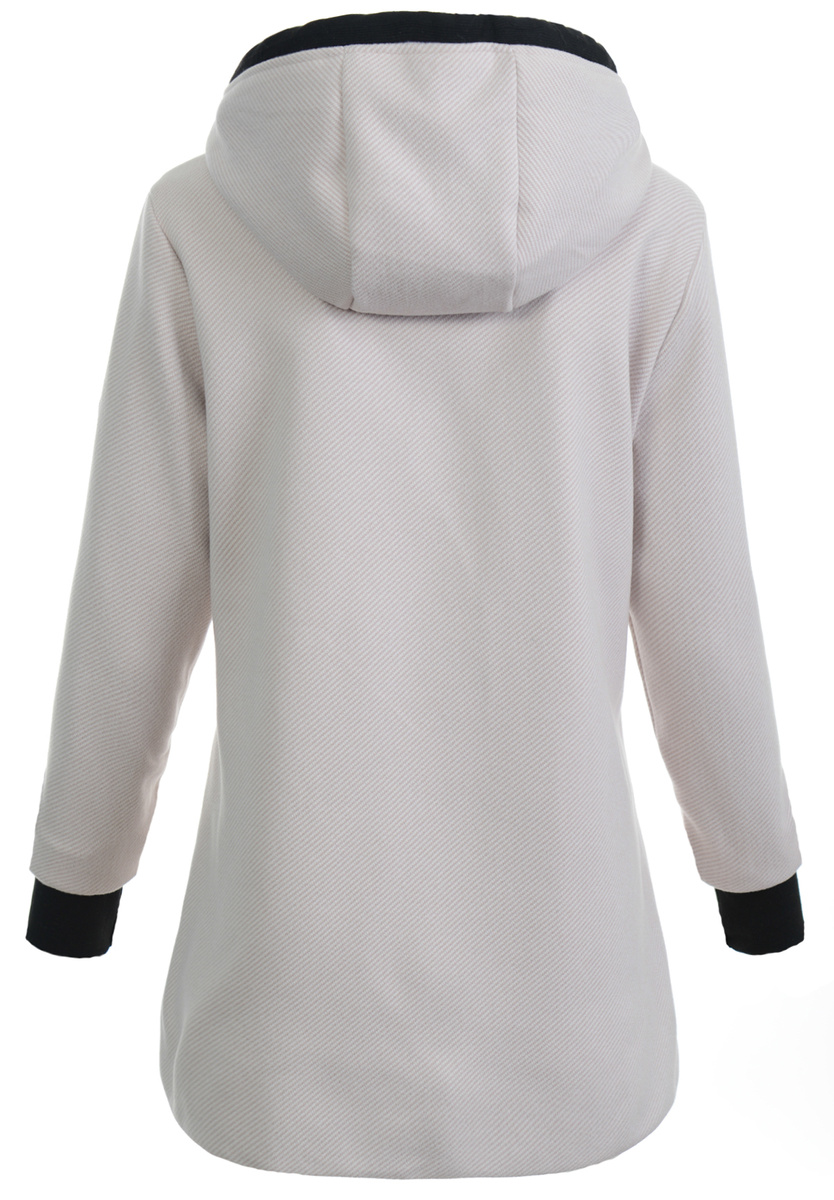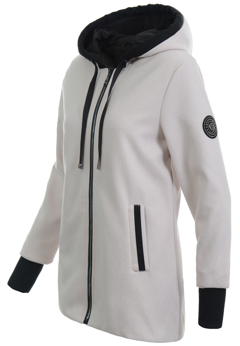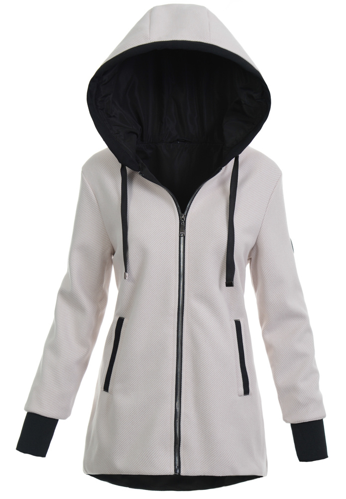 Bardzo modny i elegancki płaszcz w kolorze beżowym. Jesionka zapinana jest na suwak. Płaszcz wykończony jest cienką, poliestrową podszewką. Posiada dwie pojemne kieszenie. Kurtka posiada nieodpinany kaptur ze ściągaczem. Dodatkowo w rękawach znajdują się materiałowe ściągacze o długości 8 cm. Jesionka jest idealnym rozwiązaniem dla osób ceniących sobie wygodę oraz elegancję idealna do wielu stylizacji. Tył dłuższy o ok 6 cm.