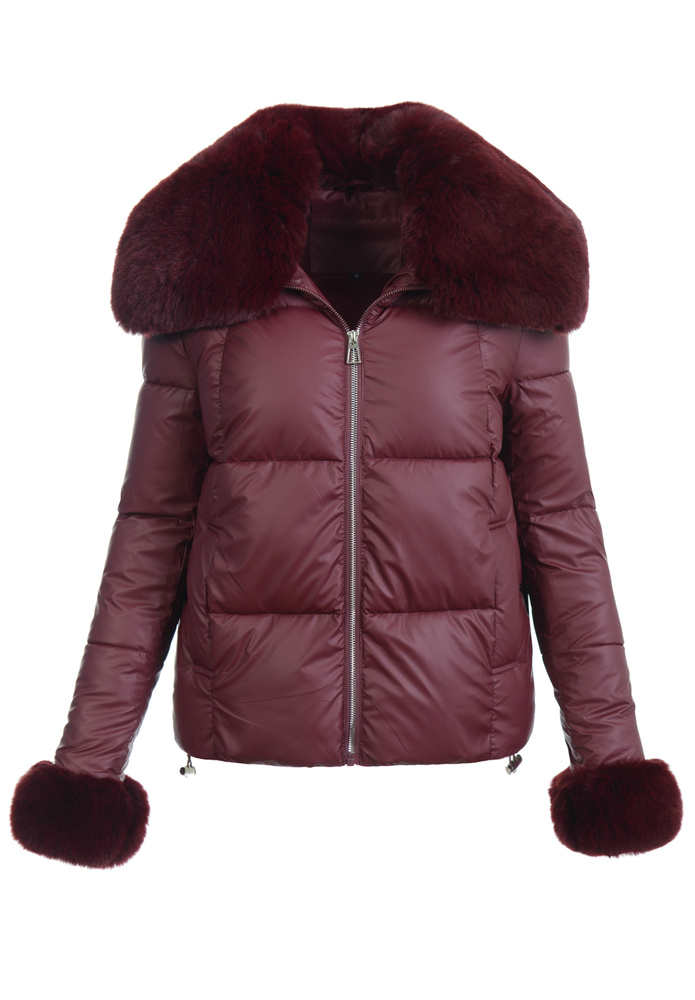 Przepiękna, bardzo modna w tym sezonie, krótka damska zimowa, pikowana kurtka w kolorze bordowym. Kurtka jest zapinana na suwak . Ocieplona wysokiej jakości wypełnieniem syntetycznym, która zapewnia termoizolację i wysoki komfort użytkowania. Posiada dwie pojemne kieszenie. Dodatkowo kurtka posiada duży kołnierz z odpinanym futerkiem. Kurtka posiada ściągacz na dole. Rękawy kurtki obszyte futerkiem. Kurteczka jest idealnym rozwiązaniem dla osób ceniących sobie wygodę idealna do wielu stylizacji.