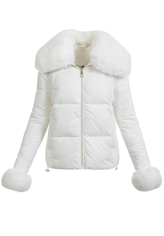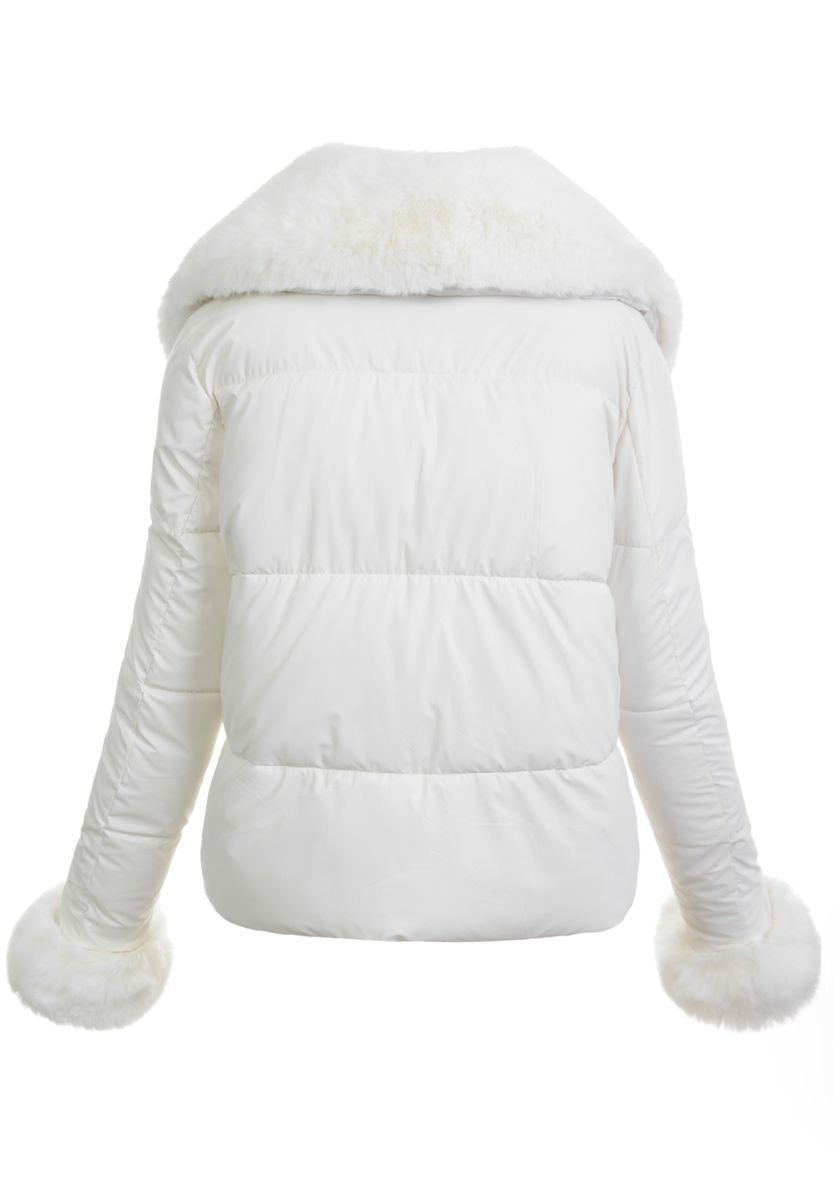 Przepiękna, bardzo modna w tym sezonie, krótka damska zimowa, pikowana kurtka w kolorze ecru. Kurtka jest zapinana na suwak . Ocieplona wysokiej jakości wypełnieniem syntetycznym, która zapewnia termoizolację i wysoki komfort użytkowania. Posiada dwie pojemne kieszenie. Dodatkowo kurtka posiada duży kołnierz z odpinanym futerkiem. Kurtka posiada ściągacz na dole. Rękawy kurtki obszyte futerkiem. Kurteczka jest idealnym rozwiązaniem dla osób ceniących sobie wygodę idealna do wielu stylizacji.