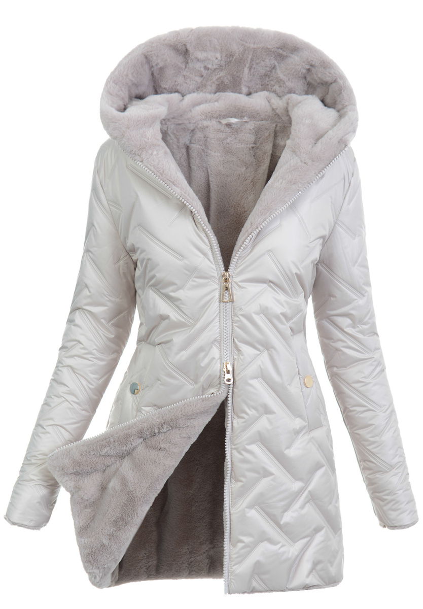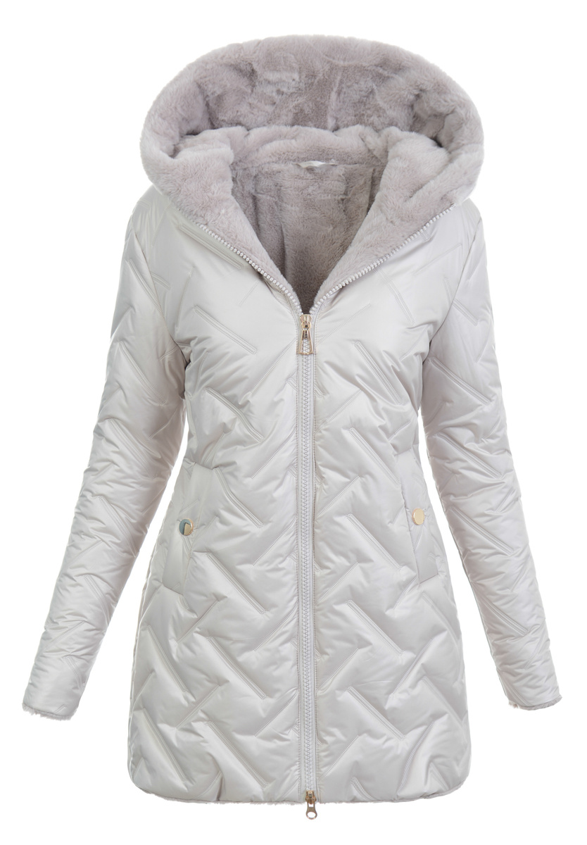 Modna, damska zimowa, pikowana kurtka w kolorze różowym, wykończona różowym futerkiem. Kurtka jest zapinana na podwójny suwak. Ocieplona wysokiej jakości wypełnieniem syntetycznym, która zapewnia termoizolację i wysoki komfort użytkowania. Posiada dwie pojemne kieszenie zapinane na napę. Dodatkowo kurtka posiada duży kaptur . Kaptur jest nieodpinany. Kurteczka jest idealnym rozwiązaniem dla osób ceniących sobie wygodę idealna do wielu stylizacji. Tył dłuższy o ok 6 cm.