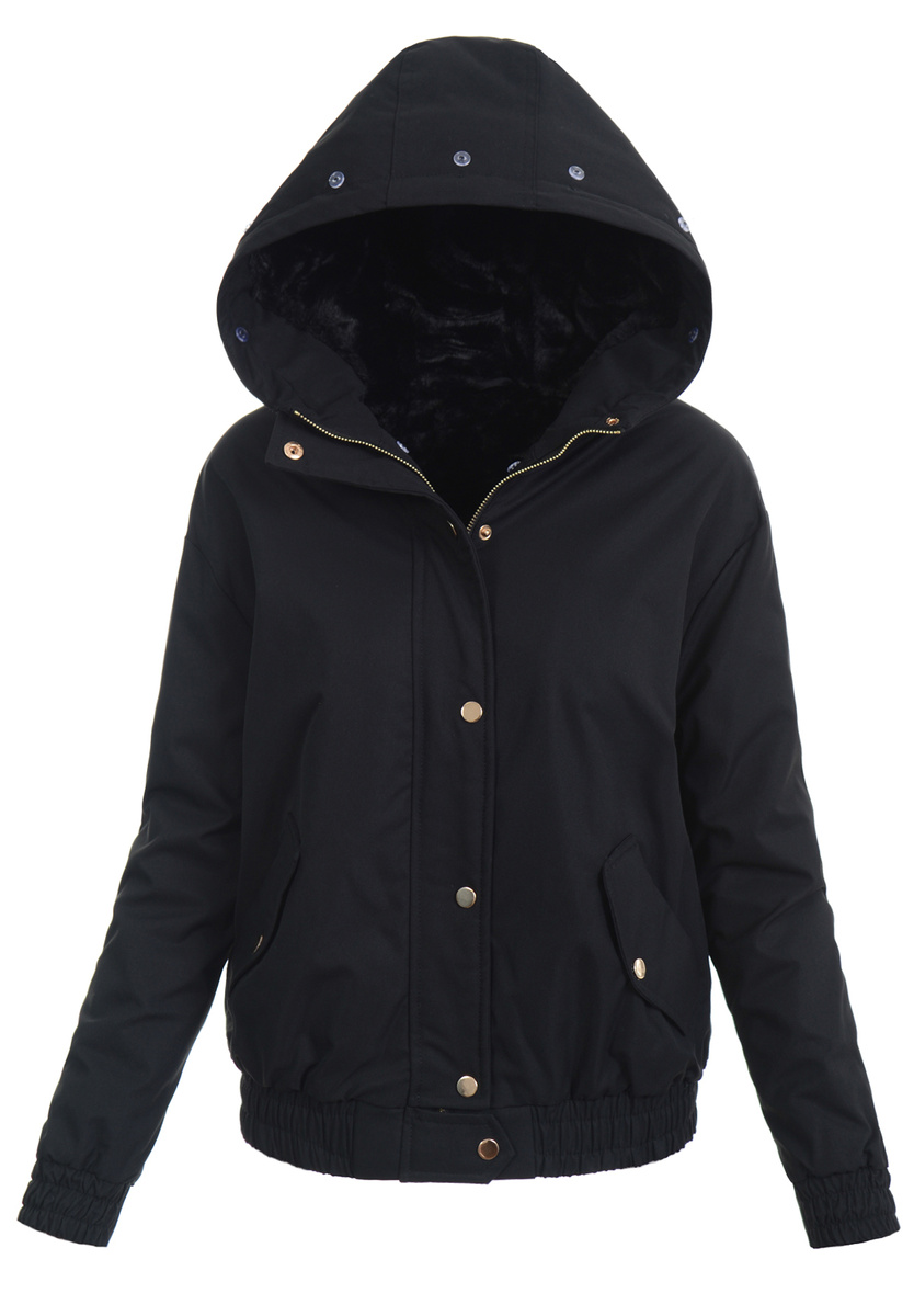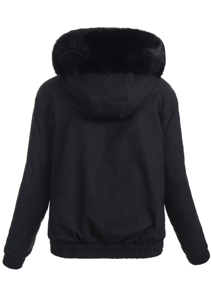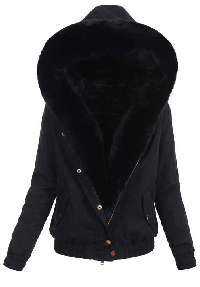 Elegancka, bardzo ciepła, damska zimowa kurtka parka. Kurtka jest w kolorze czarnym, zapinana na suwak oraz napy. Ocieplona wysokiej jakości futerkiem, która zapewnia termoizolację i wysoki komfort użytkowania. Posiada dwie pojemne kieszenie. Dodatkowo kurtka posiada duży kaptur, który idealnie nadaje się do ochrony podczas wietrznej i deszczowej pogody. Kaptur jest nieodpinany. Wzdłuż kaptura oraz suwaka znajduje się odpinane futerko. Na dole kurtki oraz w rękawach znajdują się ściągacze. Kurteczka jest idealnym rozwiązaniem dla osób ceniących sobie wygodę idealna do wielu stylizacji.