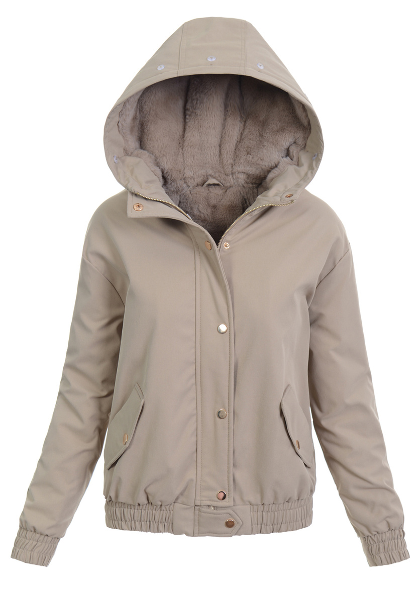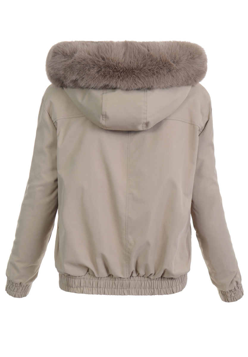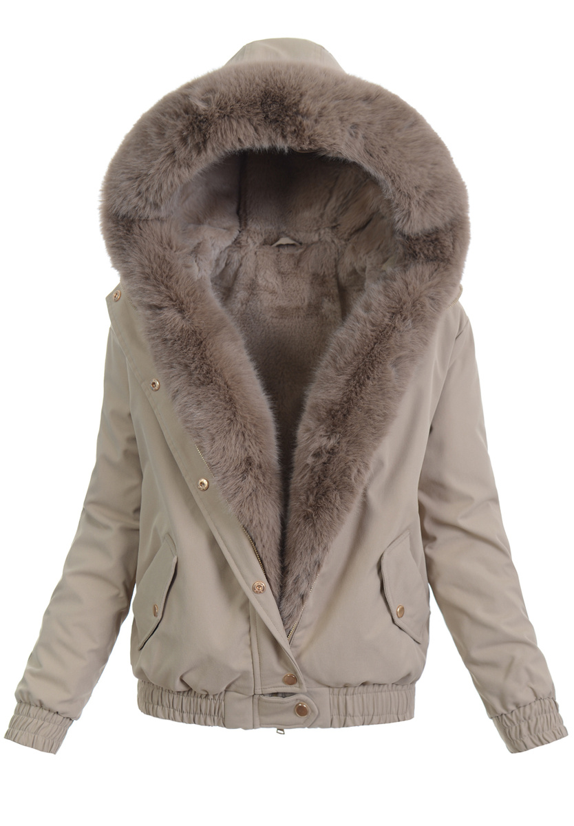 Elegancka, bardzo ciepła, damska zimowa kurtka parka. Kurtka jest w kolorze beżowym, zapinana na suwak oraz napy. Ocieplona wysokiej jakości futerkiem, która zapewnia termoizolację i wysoki komfort użytkowania. Posiada dwie pojemne kieszenie. Dodatkowo kurtka posiada duży kaptur, który idealnie nadaje się do ochrony podczas wietrznej i deszczowej pogody. Kaptur jest nieodpinany. Wzdłuż kaptura oraz suwaka znajduje się odpinane futerko. Na dole kurtki oraz w rękawach znajdują się ściągacze. Kurteczka jest idealnym rozwiązaniem dla osób ceniących sobie wygodę idealna do wielu stylizacji.