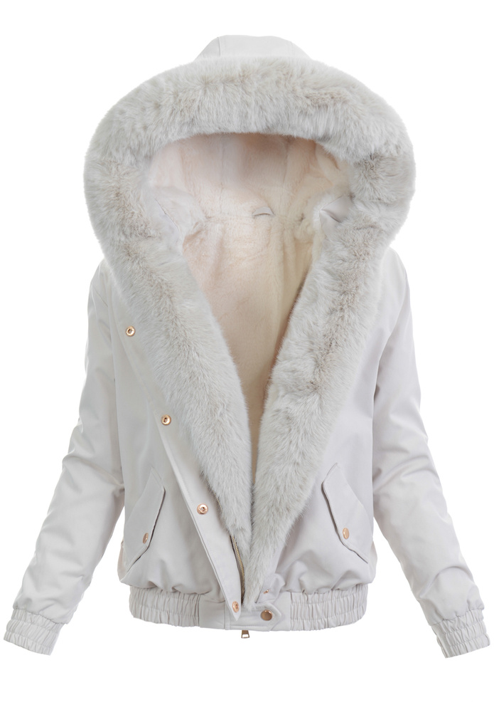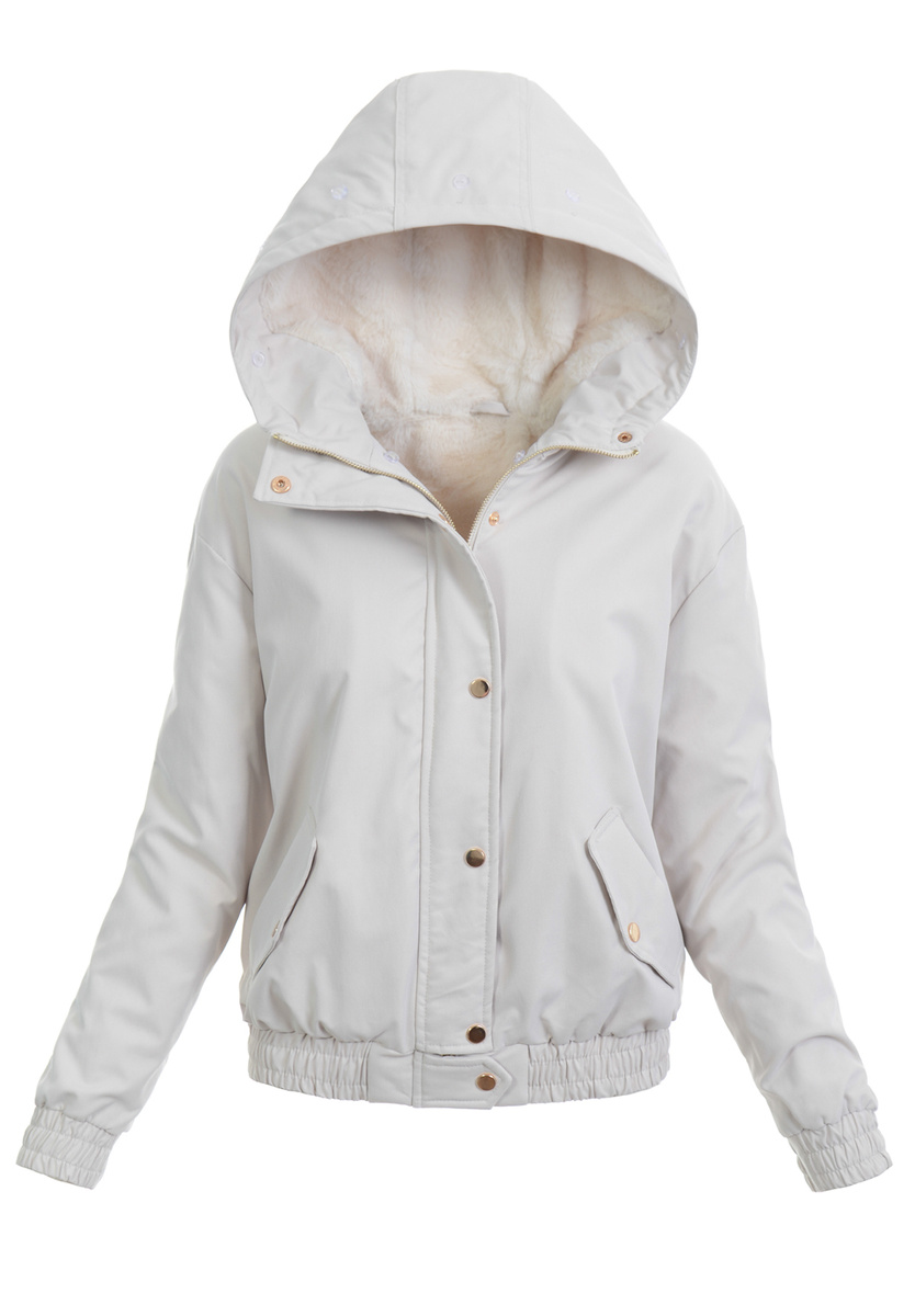Elegancka, bardzo ciepła, damska zimowa kurtka parka. Kurtka jest w kolorze ecru, zapinana na suwak oraz napy. Ocieplona wysokiej jakości futerkiem, która zapewnia termoizolację i wysoki komfort użytkowania. Posiada dwie pojemne kieszenie. Dodatkowo kurtka posiada duży kaptur, który idealnie nadaje się do ochrony podczas wietrznej i deszczowej pogody. Kaptur jest nieodpinany. Wzdłuż kaptura oraz suwaka znajduje się odpinane futerko. Na dole kurtki oraz w rękawach znajdują się ściągacze. Kurteczka jest idealnym rozwiązaniem dla osób ceniących sobie wygodę idealna do wielu stylizacji.