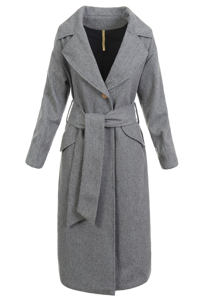 Bardzo modny i nowoczesny płaszcz w kolorze czarnym. Płaszcz jest długi, sięga za kolano. Jesionka zapinana jest na guziki. Płaszcz wykończony jest cienką, poliestrową podszewką. Posiada dwie pojemne kieszenie. Płaszcz posiada pasek do zawiązania w pasie.  Jesionka jest idealnym rozwiązaniem dla osób ceniących sobie wygodę oraz elegancję idealna do wielu stylizacji.