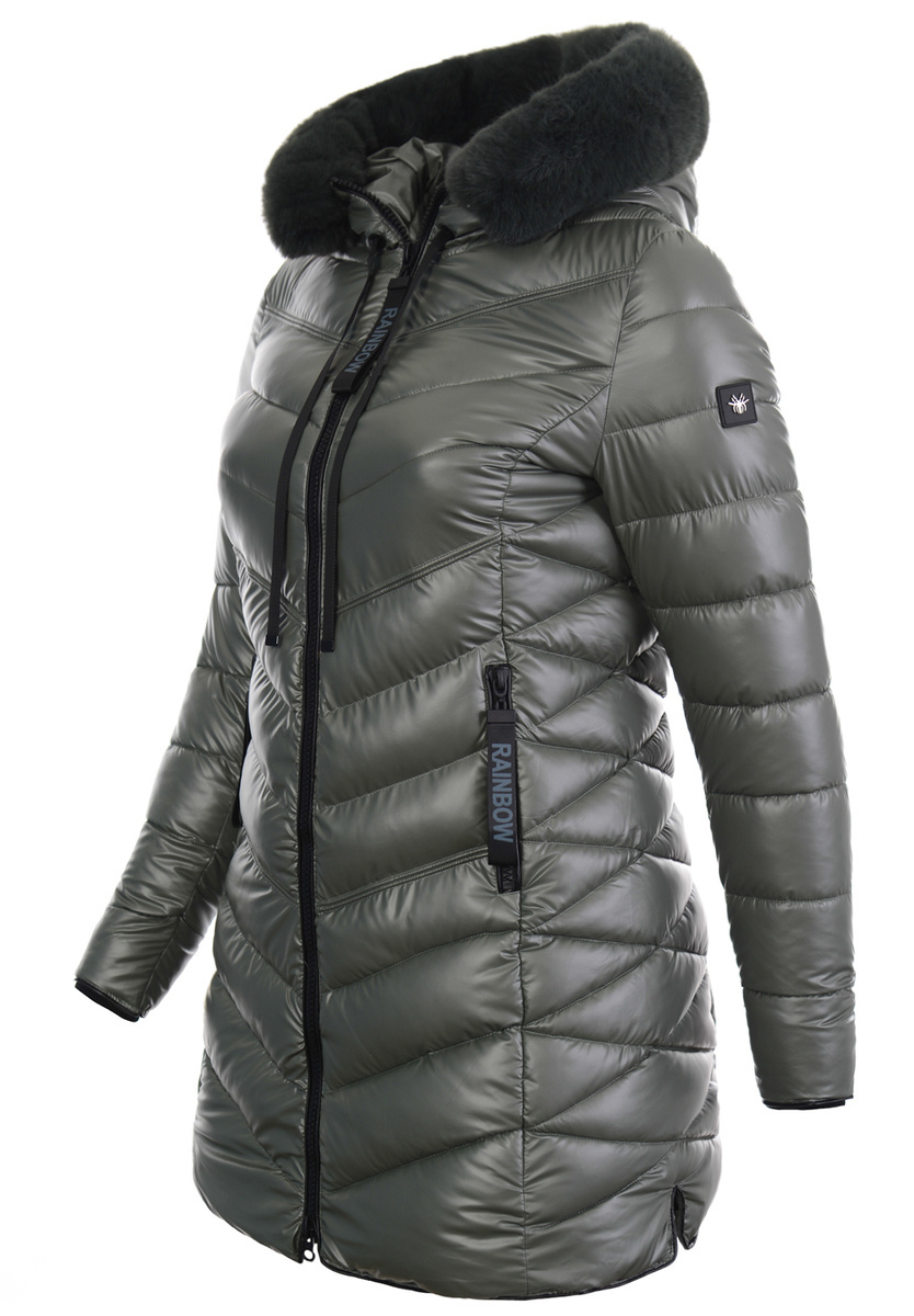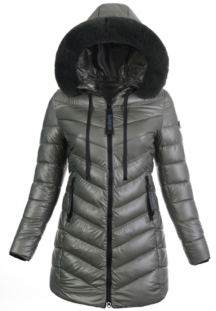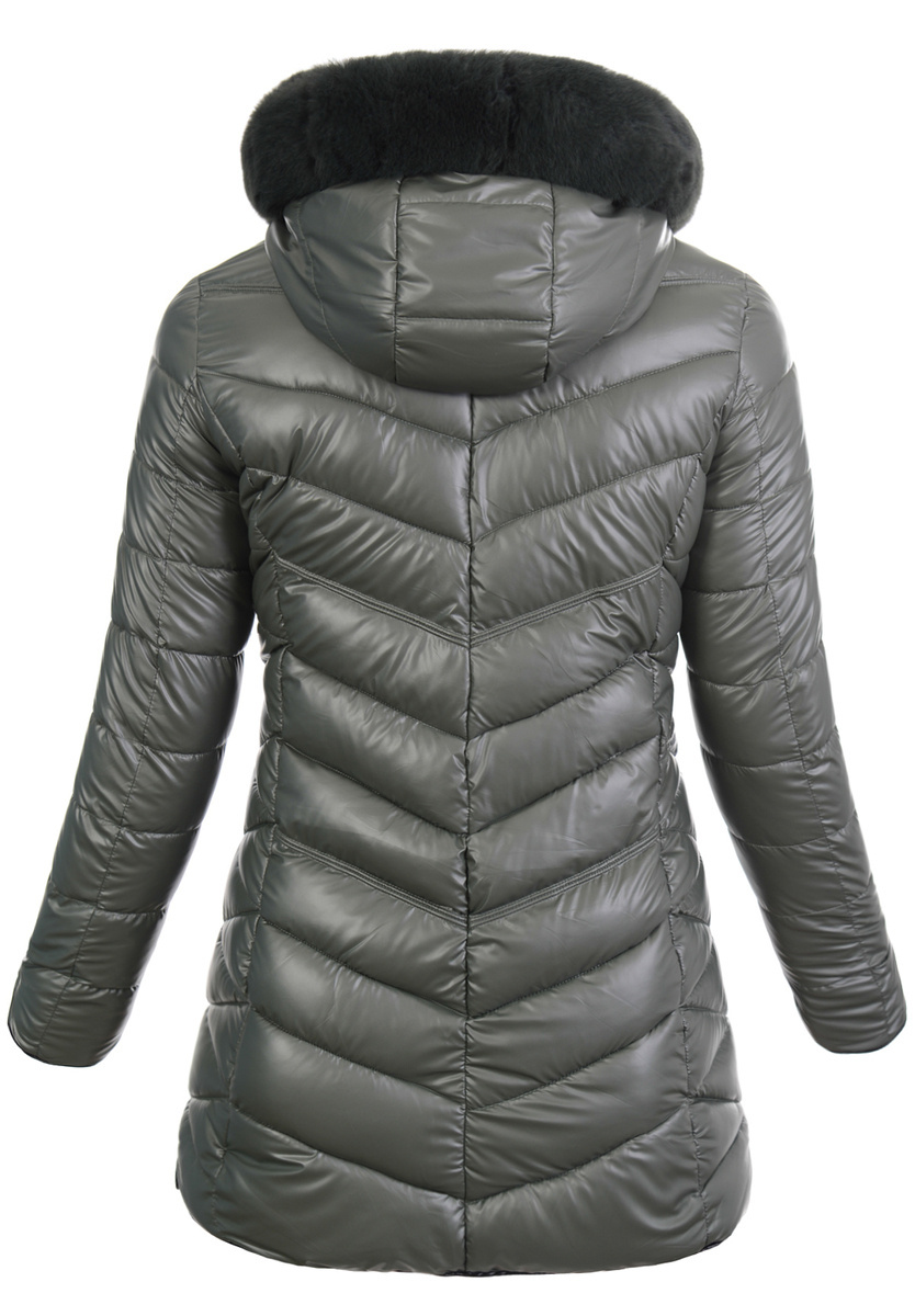 Bardzo modna w tym sezonie kurtka zimowa damska w kolorze zielonym. Kurtka zapinana jest na podwójny suwak i posiada z przodu dwie kieszenie zasuwane na suwaki. Wysokiej jakości wypełnienie syntetyczne jest równomiernie rozprowadzone po kurtce i zapewnia ochronę w mroźne, zimowe dni. Rękawy kurtki są ocieplane, wykończone podszewką. Dodatkowym atutem jest nieodpinany kaptur z odpinanym futerkiem, który zapewnia ochronę przed wiatrem i deszczem. Ściągacz w mankietach kurtki. Kurtka wykonana jest z materiałów najwyższej jakości. Kurtka idealnie sprawdzi się w różnego rodzaju zimowych stylizacjach.