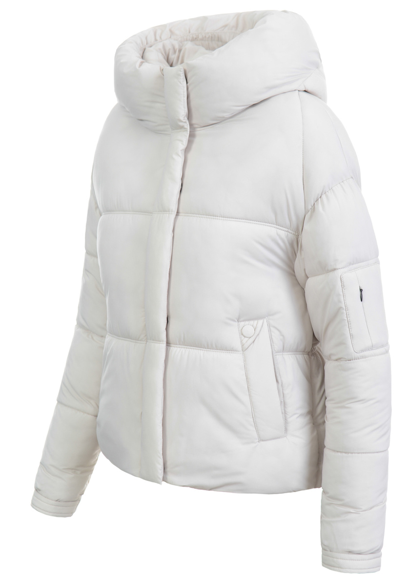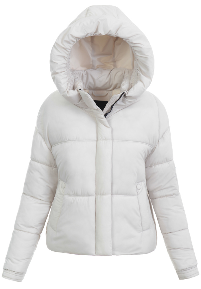 Przepiękna, bardzo ciepła, damska zimowa kurtka ortalionowa. Kurtka jest w kolorze ecru, zapinana suwak oraz napy. Ocieplona wysokiej jakości ociepleniem syntetycznym, który zapewnia termoizolację i wysoki komfort użytkowania. Posiada dwie pojemne kieszenie po bokach oraz jedną kieszeń zasuwaną na suwak na ramieniu. Dodatkowo kurtka posiada duży nieodpinany kaptur, który idealnie nadaje się do ochrony podczas wietrznej i deszczowej pogody. Dodatkowo kurtka posiada mankiety zapinane na rzepy w rękawach oraz ściągacz na dole. Kurteczka jest idealnym rozwiązaniem dla osób ceniących sobie wygodę idealna do wielu stylizacji.
