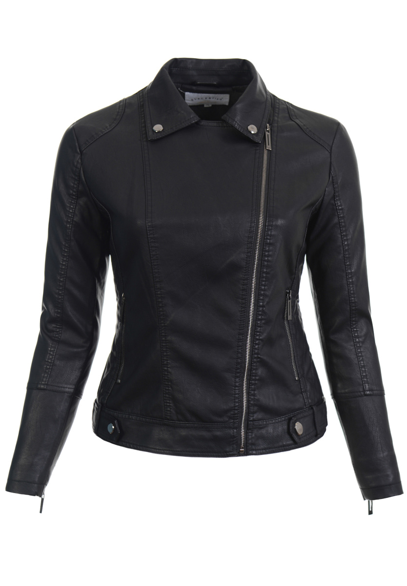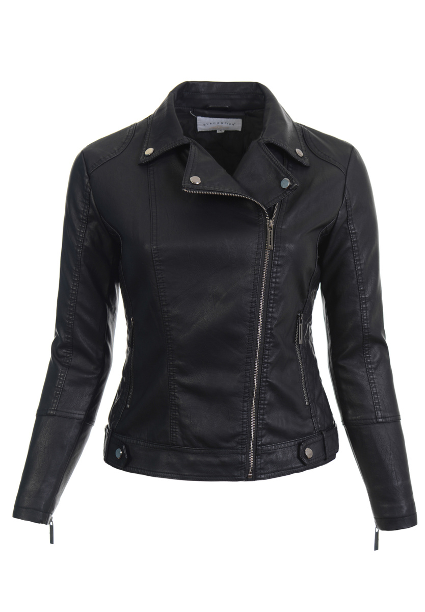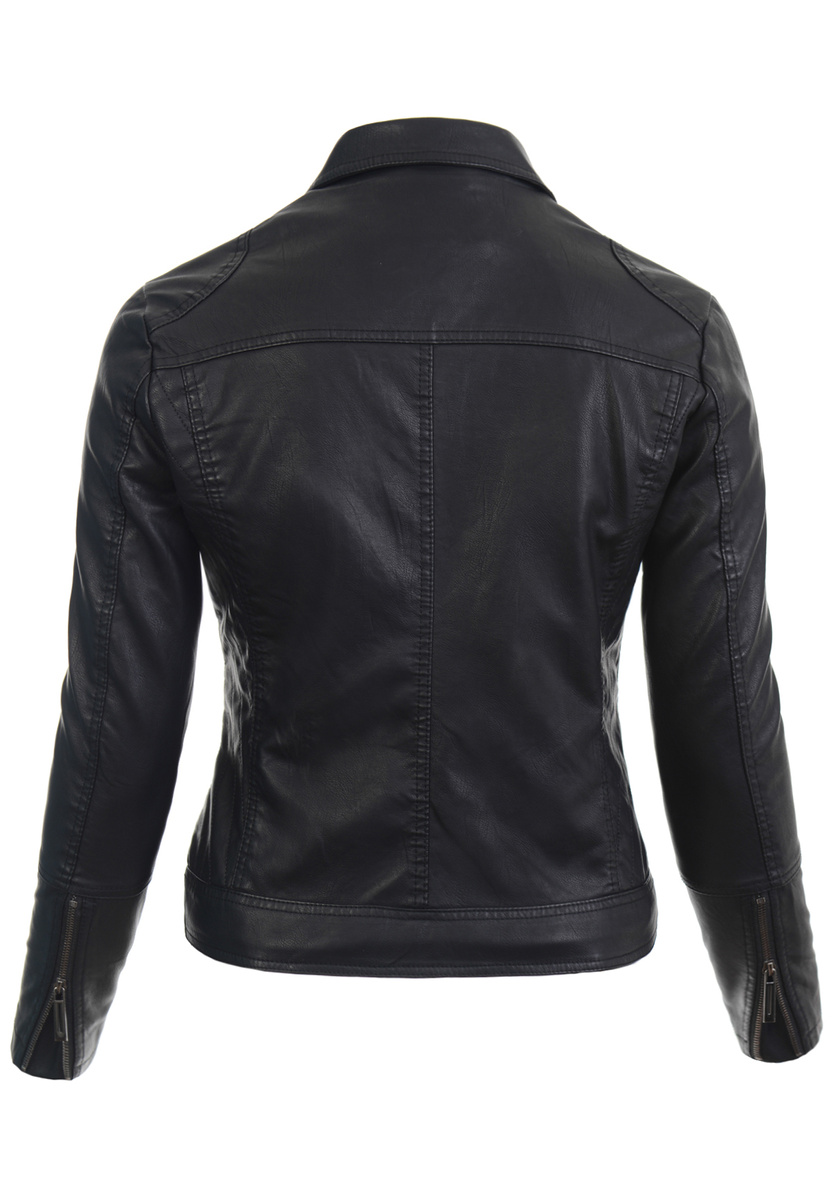 Piękna damska ramoneska. Kolor czarny. Kurtka wykonana z bardzo dobrej jakości ekoskóry. Zapinana jest na ukośny suwak. Po bokach znajdują się dwie kieszenie zapinane na suwak. Dodatkowo w mankietach znajdują się suwaki. Ramoneska idealnie sprawdza się dla osób ceniących sobie wygodę oraz elegancję. Taliowany krój ramoneski podkreśla talię i kobiece kształty.