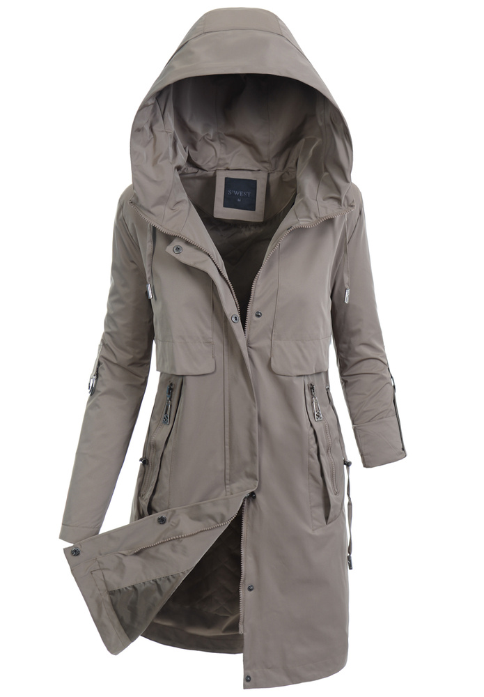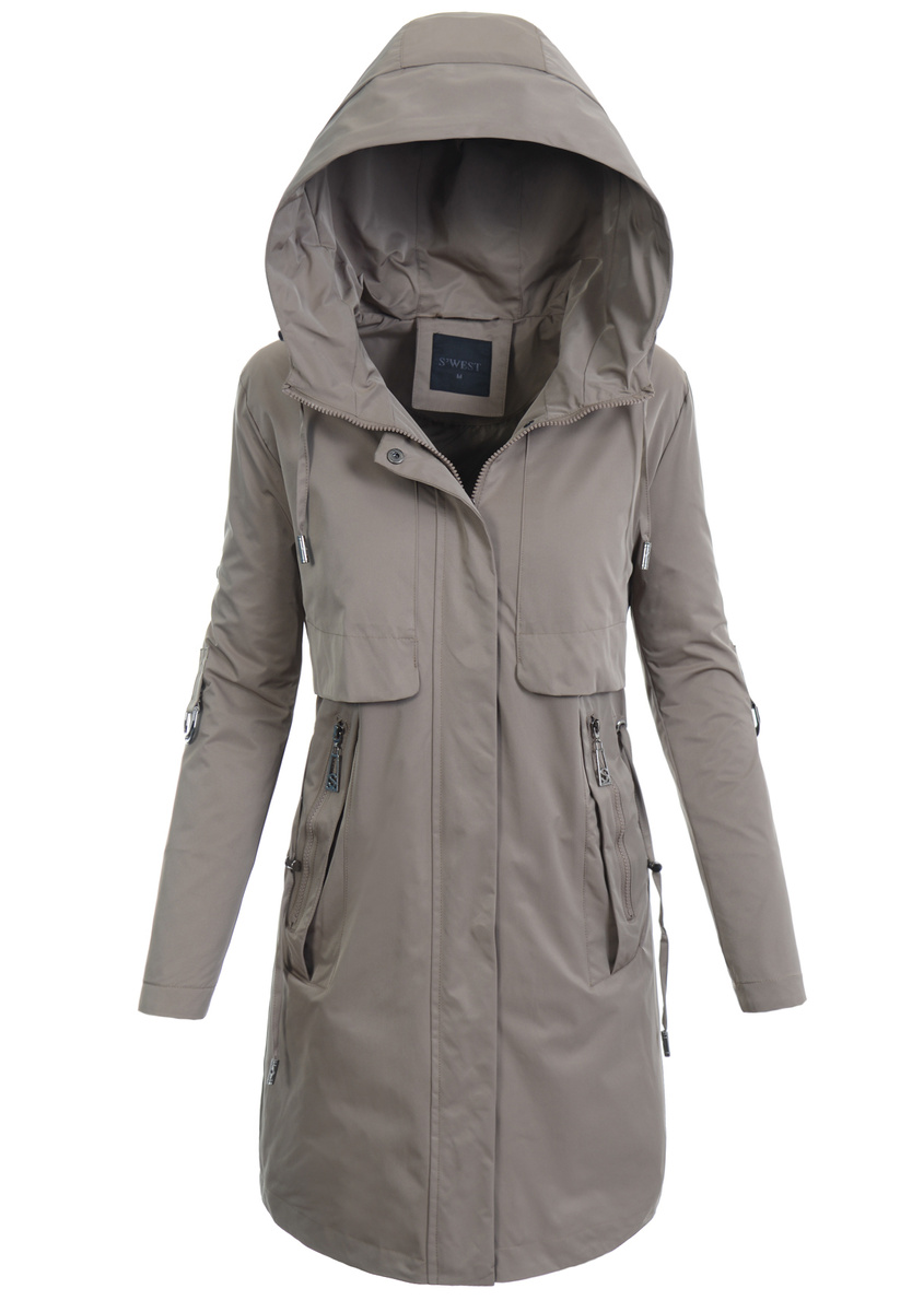 Rewelacyjna wiosenna parka przejściowa w kolorze brązowym. Płaszcz zapinany jest na podwójny suwak oraz napy. Płaszcz posiada dwie praktyczne zapinane na napy kieszenie. Dodatkowym atutem jest możliwość wywinięcia rękawów. Płaszcz posiada ściągacz w talii. Kurtka doskonale sprawdzi się podczas wiosennych spacerów. Kurtka wyposażona jest w nieodpinany kaptur ze ściągaczem. Parka wykonana jest z najwyższej jakości materiałów, które zapewniają komfort jej noszenia.