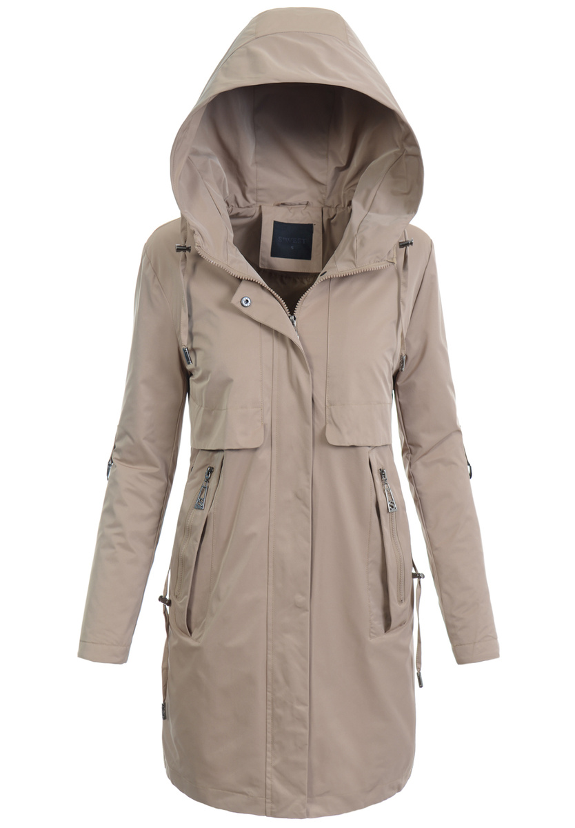 Rewelacyjna wiosenna parka przejściowa w kolorze beżowym. Płaszcz zapinany jest na podwójny suwak oraz napy. Płaszcz posiada dwie praktyczne zapinane na napy kieszenie. Dodatkowym atutem jest możliwość wywinięcia rękawów. Płaszcz posiada ściągacz w talii. Kurtka doskonale sprawdzi się podczas wiosennych spacerów. Kurtka wyposażona jest w nieodpinany kaptur ze ściągaczem. Parka wykonana jest z najwyższej jakości materiałów, które zapewniają komfort jej noszenia.