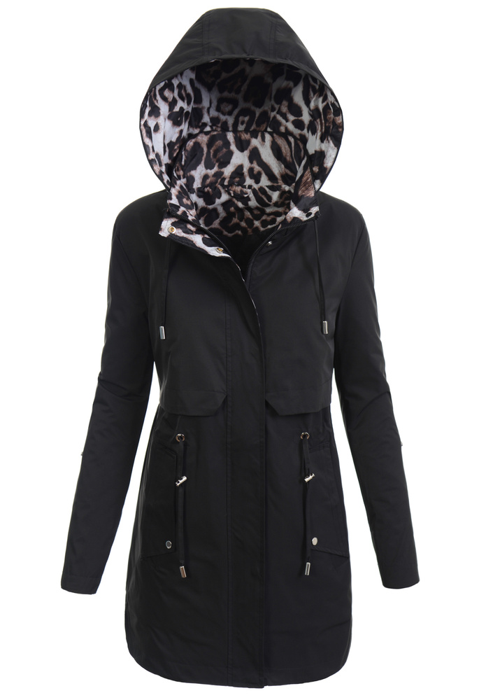 Rewelacyjna wiosenna parka przejściowa w kolorze czarnym. Płaszcz zapinany jest na suwak oraz napy. Płaszcz posiada dwie praktyczne zapinane na napy kieszenie. Dodatkowym atutem jest możliwość wywinięcia rękawów. Płaszcz posiada ściągacz w talii. Kurtka doskonale sprawdzi się podczas wiosennych spacerów. Kurtka wyposażona jest w odpinany kaptur ze ściągaczem. Parka wykonana jest z najwyższej jakości materiałów, które zapewniają komfort jej noszenia.