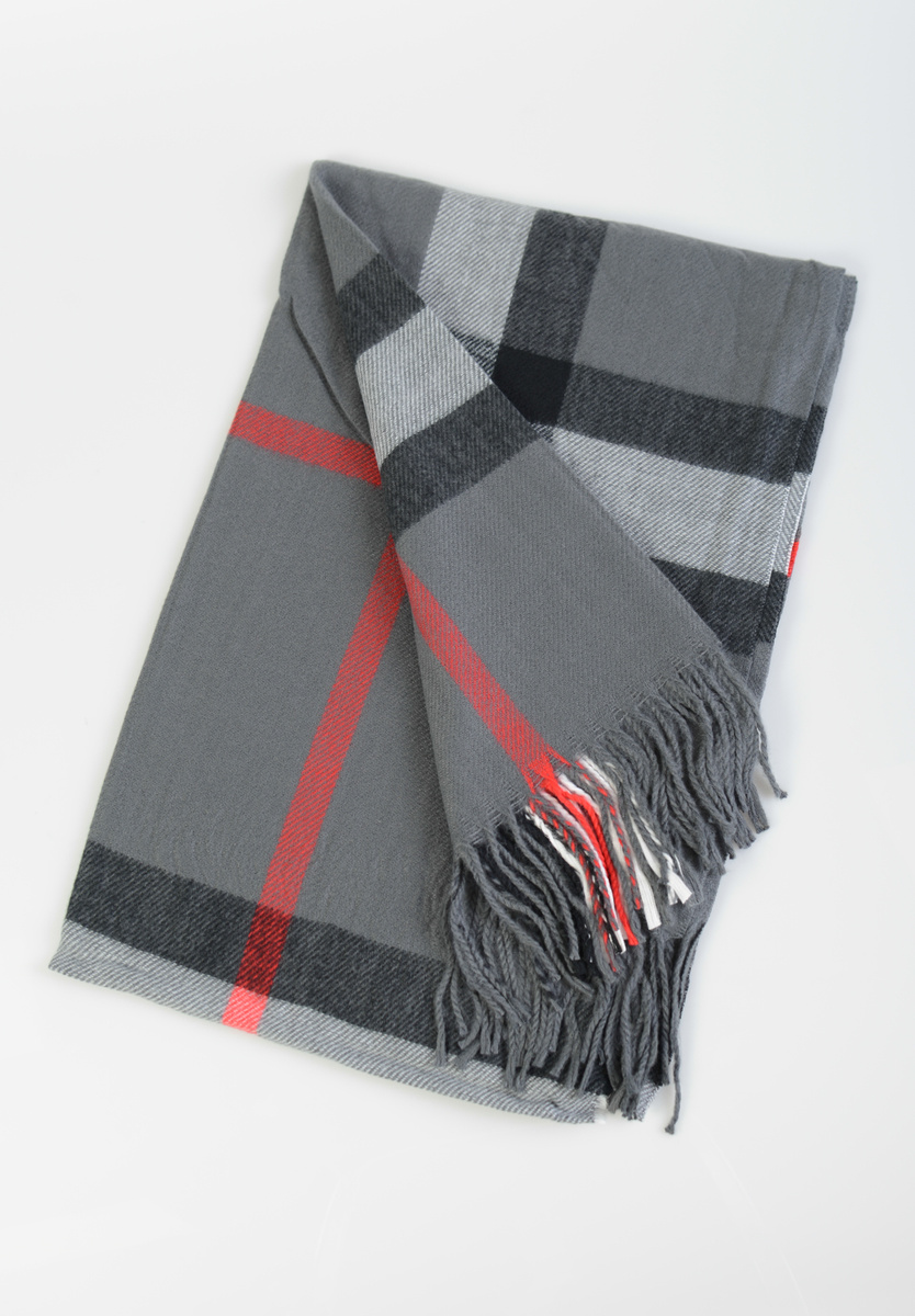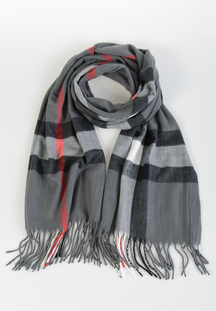 Damski duży szalik. Szal w modną kratę, wielokolorowy w kolorach: grafitowym i szarym. Szal sprawdzi się idealnie do wielu stylizacji na jesienne oraz zimowe dni. Materiał: 70% Wiskoza, 30% Wełna. Wymiary ok. 186 cm x 67 cm.