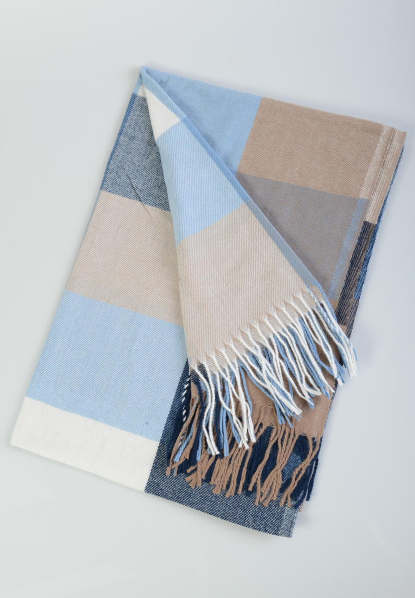 Szal Damski Brązowo-Niebieski W Kratę