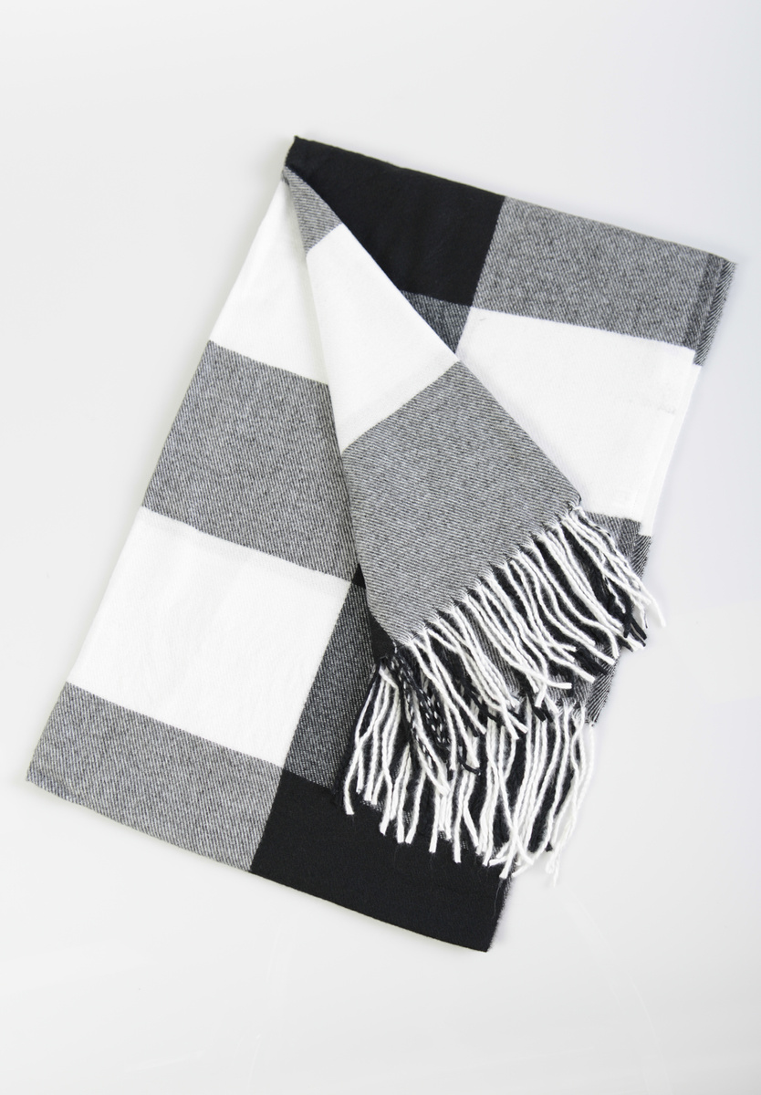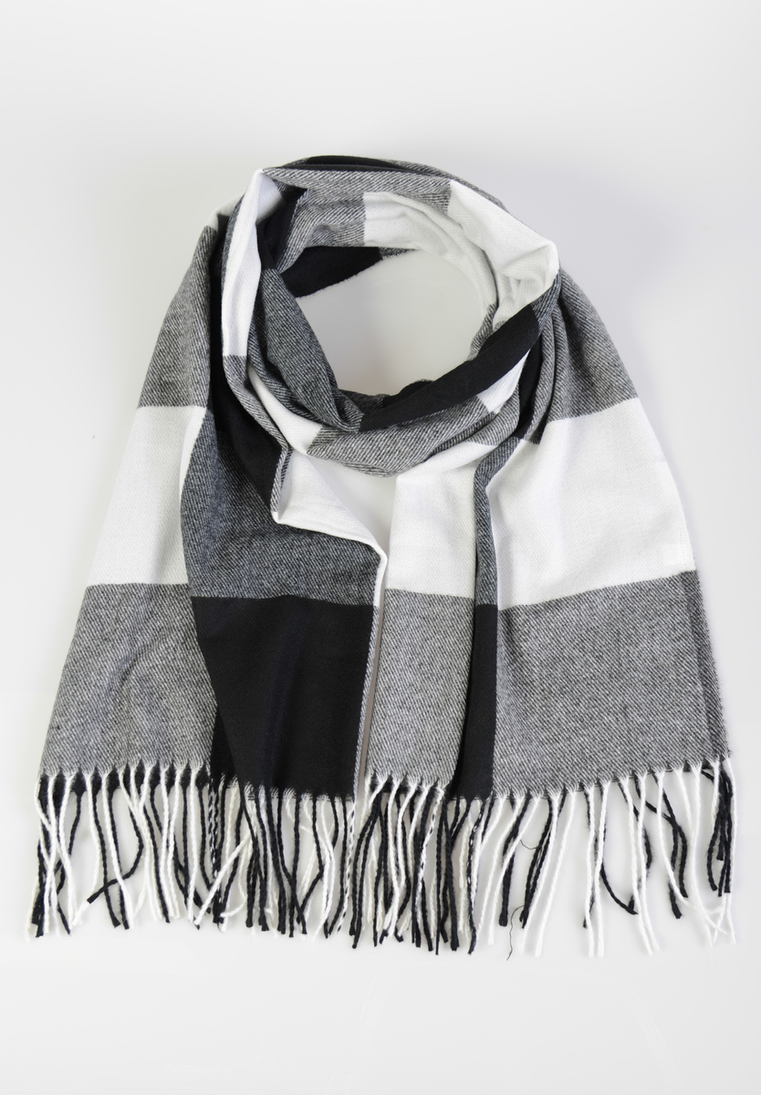 Szal Damski Czarno-Biały W Kratę