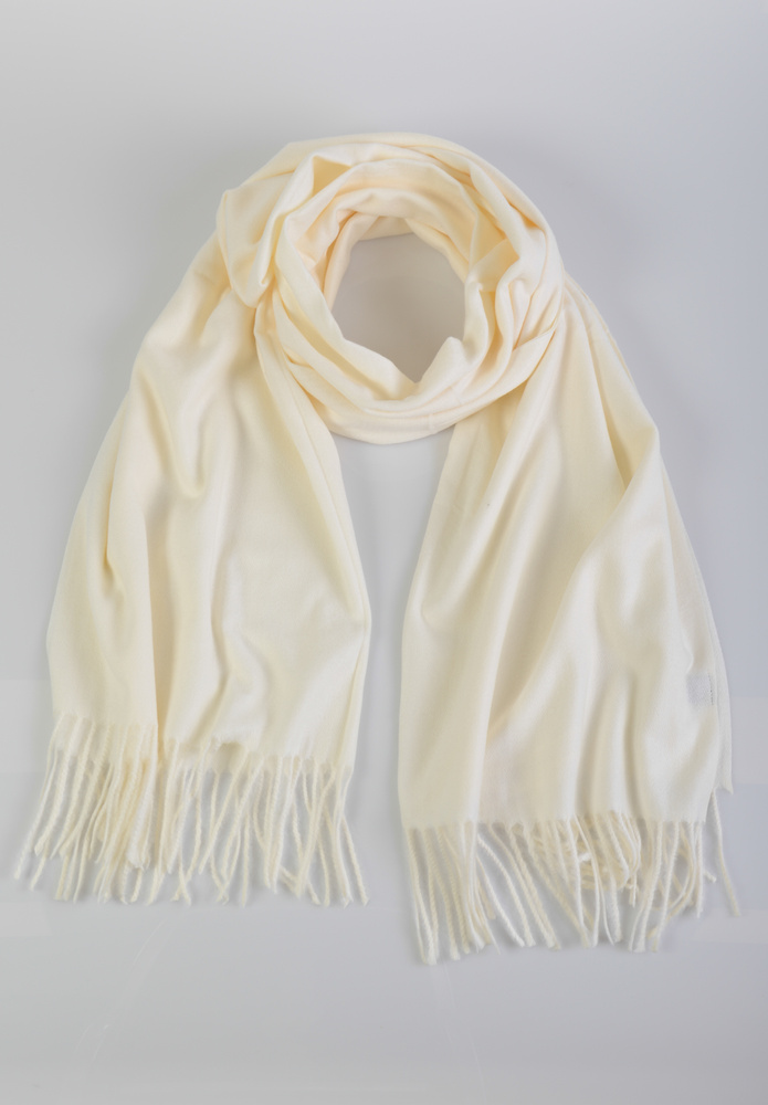 Damski duży szalik. Szal w kolorze ecru. Szal sprawdzi się idealnie do wielu stylizacji na jesienne oraz zimowe dni. Materiał: 100 % Wiskoza. Wymiary ok.  186 cm x 67 cm.