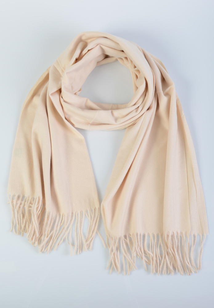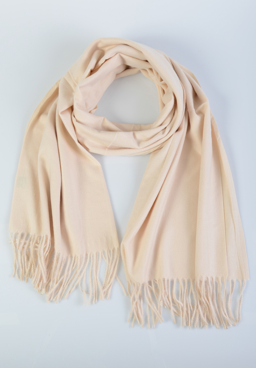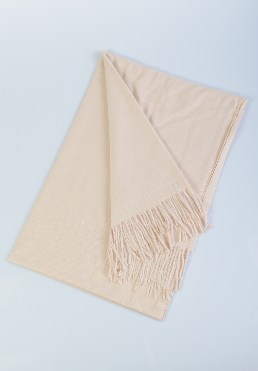 Damski duży szalik. Szal w kolorze beżowym. Szal sprawdzi się idealnie do wielu stylizacji na jesienne oraz zimowe dni. Materiał: 100 % Wiskoza. Wymiary ok.  186 cm x 67 cm.