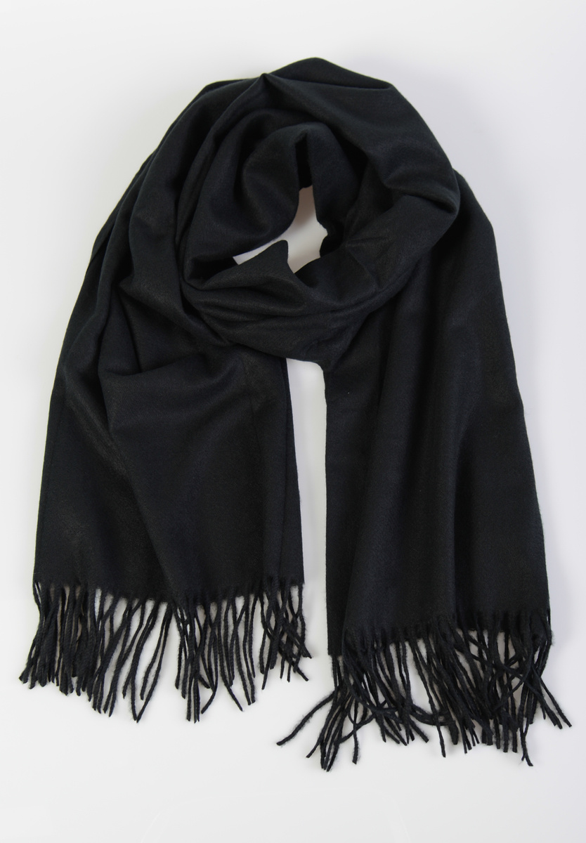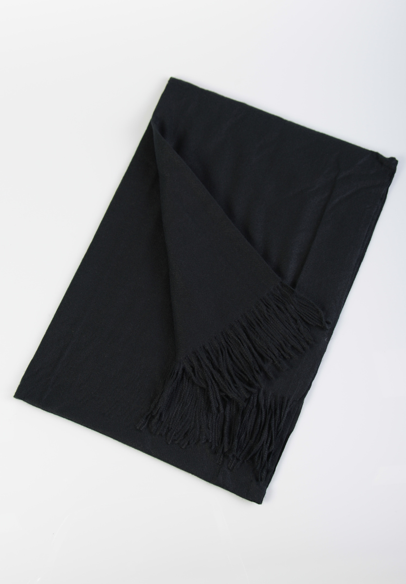 Damski duży szalik. Szal w kolorze czarnym. Szal sprawdzi się idealnie do wielu stylizacji na jesienne oraz zimowe dni. Materiał: 100 % Wiskoza. Wymiary ok.  186 cm x 67 cm.