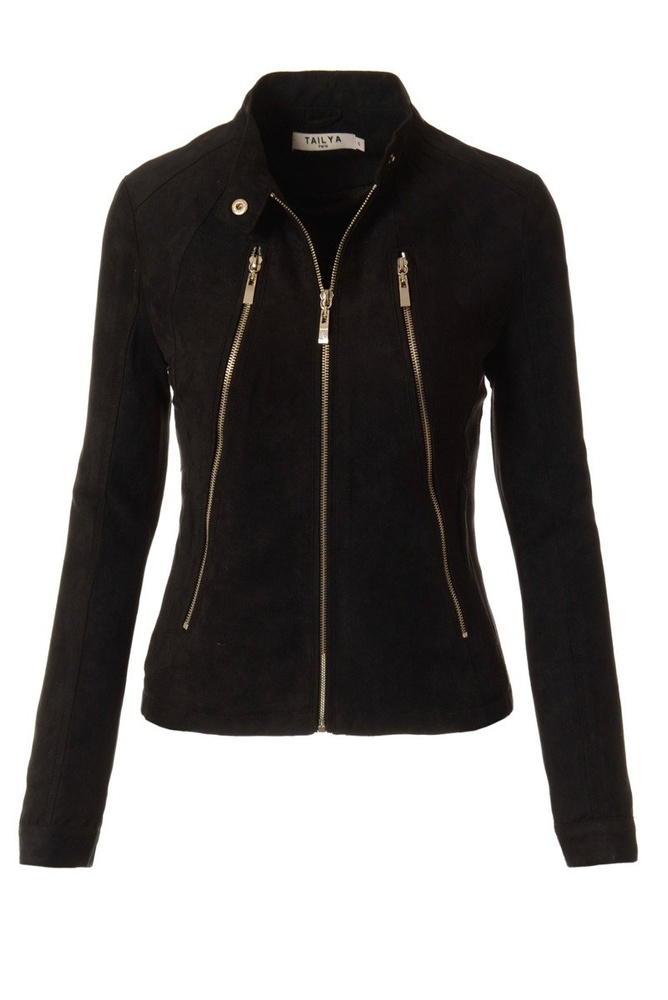 Damska kurtka ramoneska zamszowa w kolorze czarnym.