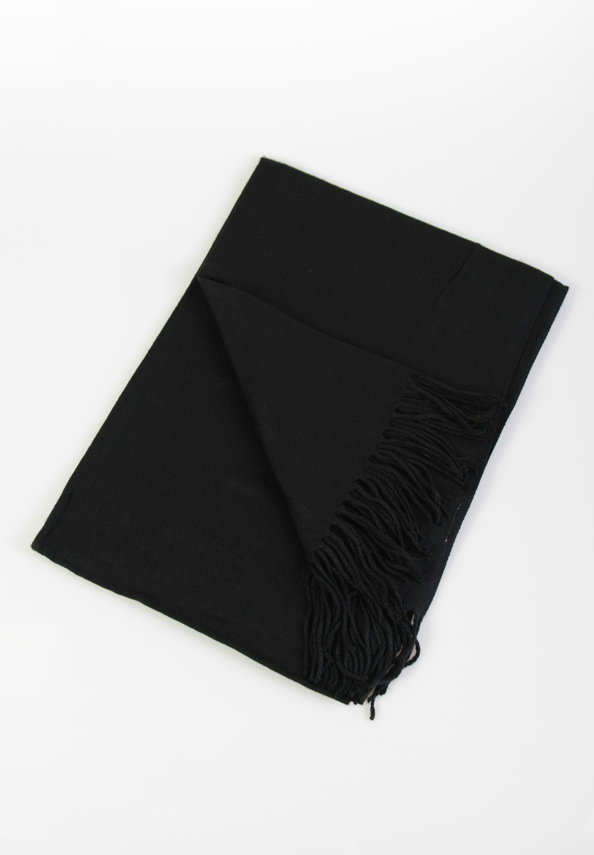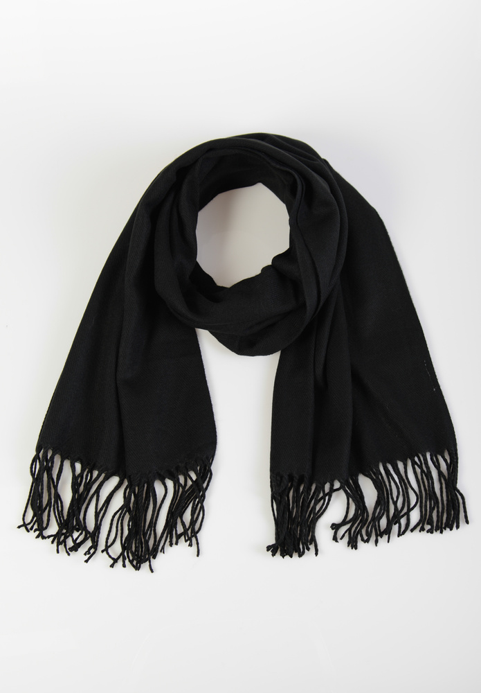 Damski duży szalik. Szal w kolorze czarnym. Szal sprawdzi się idealnie do wielu stylizacji na jesienne oraz zimowe dni. Materiał: 100 % Wiskoza. Wymiary ok. 186 cm x 67 cm.