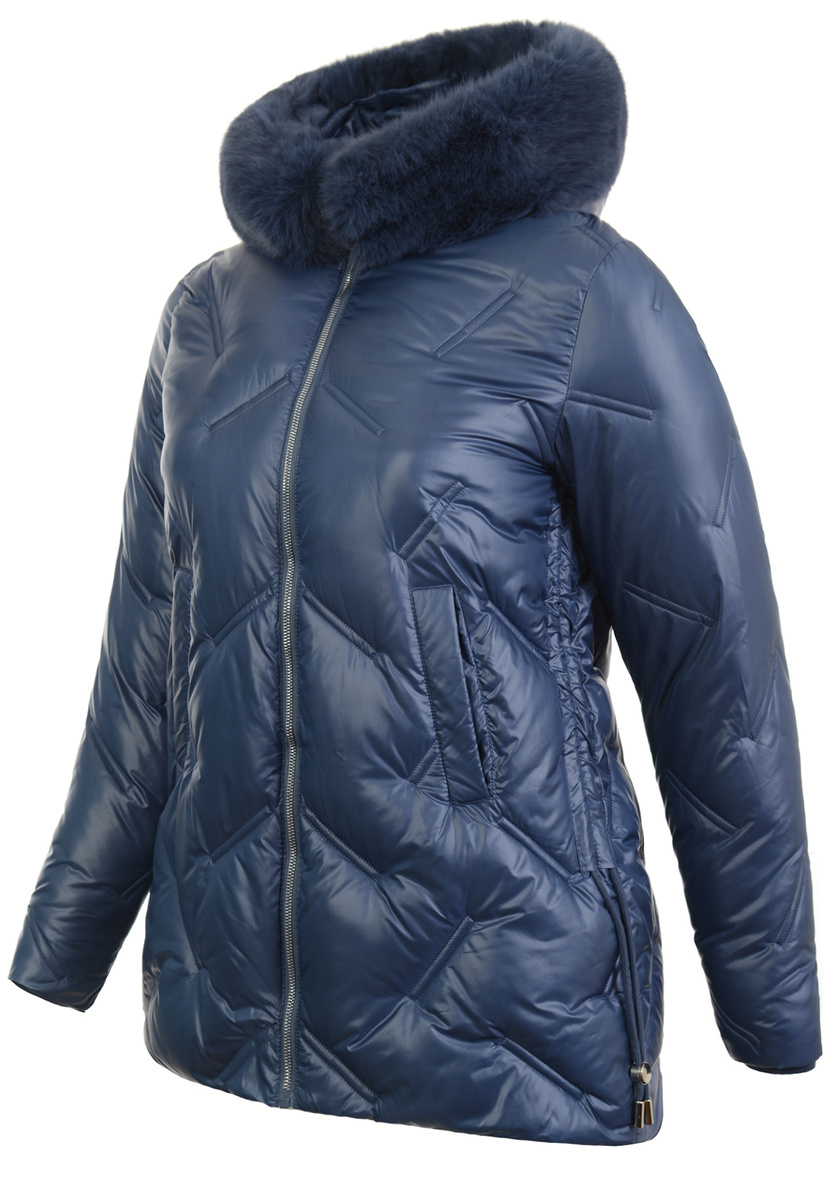 Modna w tym sezonie, bardzo ciepła, damska zimowa kurtka ortalionowa. Kurtka jest w kolorze niebieskim, zapinana na suwak. Ocieplona wysokiej jakości ociepleniem syntetycznym, który zapewnia termoizolację i wysoki komfort użytkowania. Posiada dwie pojemne kieszenie. Dodatkowo kurtka posiada duży kaptur z odpinanym futerkiem, który idealnie nadaje się do ochrony podczas wietrznej i deszczowej pogody. Kaptur jest nieodpinany. Kurteczka jest idealnym rozwiązaniem dla osób ceniących sobie wygodę idealna do wielu stylizacji.