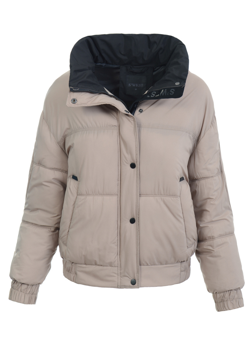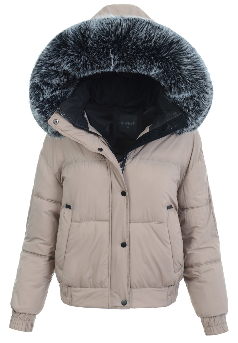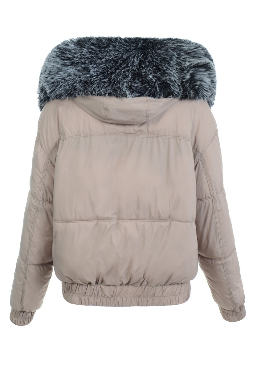 Przepiękna, bardzo ciepła, krótka damska zimowa kurtka ortalionowa. Styl oversize. Kurtka jest w kolorze beżowym, zapinana suwak oraz napy. Ocieplona wysokiej jakości ociepleniem syntetycznym, który zapewnia termoizolację i wysoki komfort użytkowania. Posiada dwie pojemne kieszenie po bokach. Dodatkowo kurtka posiada duży odpinany kaptur z odpinanym futerkiem, który idealnie nadaje się do ochrony podczas wietrznej i deszczowej pogody. Dodatkowo kurtka posiada ściągacz na dole oraz w mankietach. Kurteczka jest idealnym rozwiązaniem dla osób ceniących sobie wygodę idealna do wielu stylizacji.