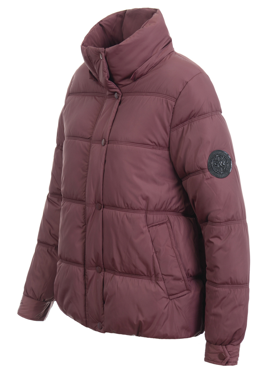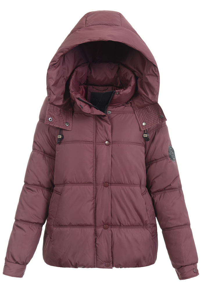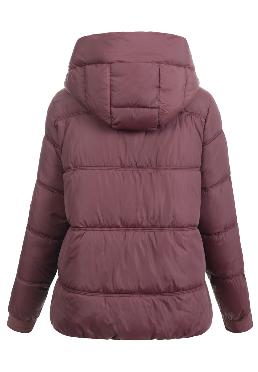 Elegancka, modna damska zimowa kurtka ortalionowa. Kurtka jest w kolorze bordowym, zapinana na suwak oraz napy. Ocieplona wysokiej jakości ociepleniem syntetycznym, który zapewnia termoizolację i wysoki komfort użytkowania. Posiada dwie pojemne kieszenie po bokach. Dodatkowo kurtka posiada odpinany kaptur ze ściągaczem. Dodatkowo w mankietach kurtki znajdują się mankiety zapinane na napę. Kurteczka jest idealnym rozwiązaniem dla osób ceniących sobie wygodę idealna do wielu stylizacji.