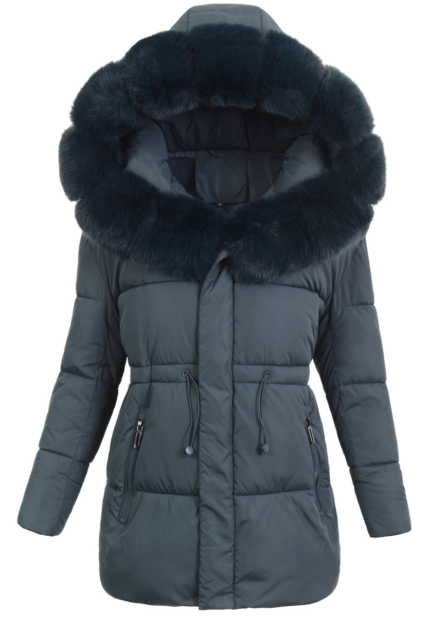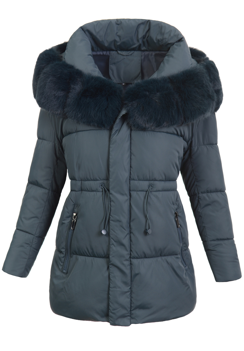 Przepiękna, modna damska zimowa kurtka ortalionowa. Kurtka jest w kolorze zielonym, zapinana na suwak oraz napy. Ocieplona wysokiej jakości ociepleniem syntetycznym, który zapewnia termoizolację i wysoki komfort użytkowania. Posiada dwie pojemne kieszenie po bokach. Kieszenie są zapinane na suwak. Dodatkowo kurtka posiada odpinany kaptur ze ściągaczem i pięknym futerkiem. Futerko przy kapturze również jest odpinane. Dodatkowo kurtka posiada ściągać w pasie, który pozwala na idealne dopasowanie kurtki do sylwetki. Kurteczka jest idealnym rozwiązaniem dla osób ceniących sobie wygodę idealna do wielu stylizacji.